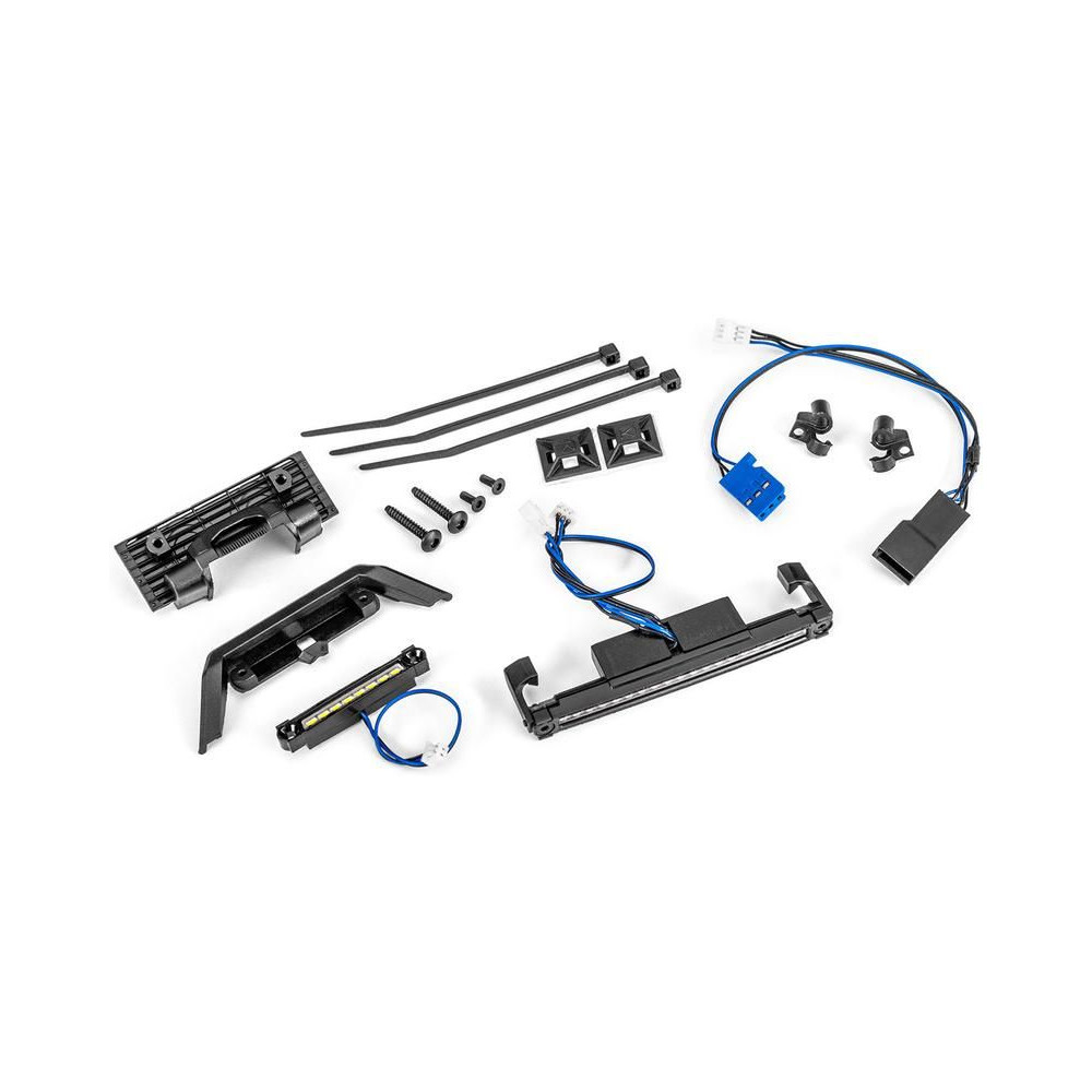 Traxxas LED világító készlet a TRX-4M Land Rover Defender és Bronco 2021 RC modellekhez. A készlet tartalmaz egy első lökhárító rudat és egy tető rudat, a rögzítő tartozékokkal együtt. Nagy fényerejű LED-ek, könnyű szerelhetőség, vízálló kivitel.