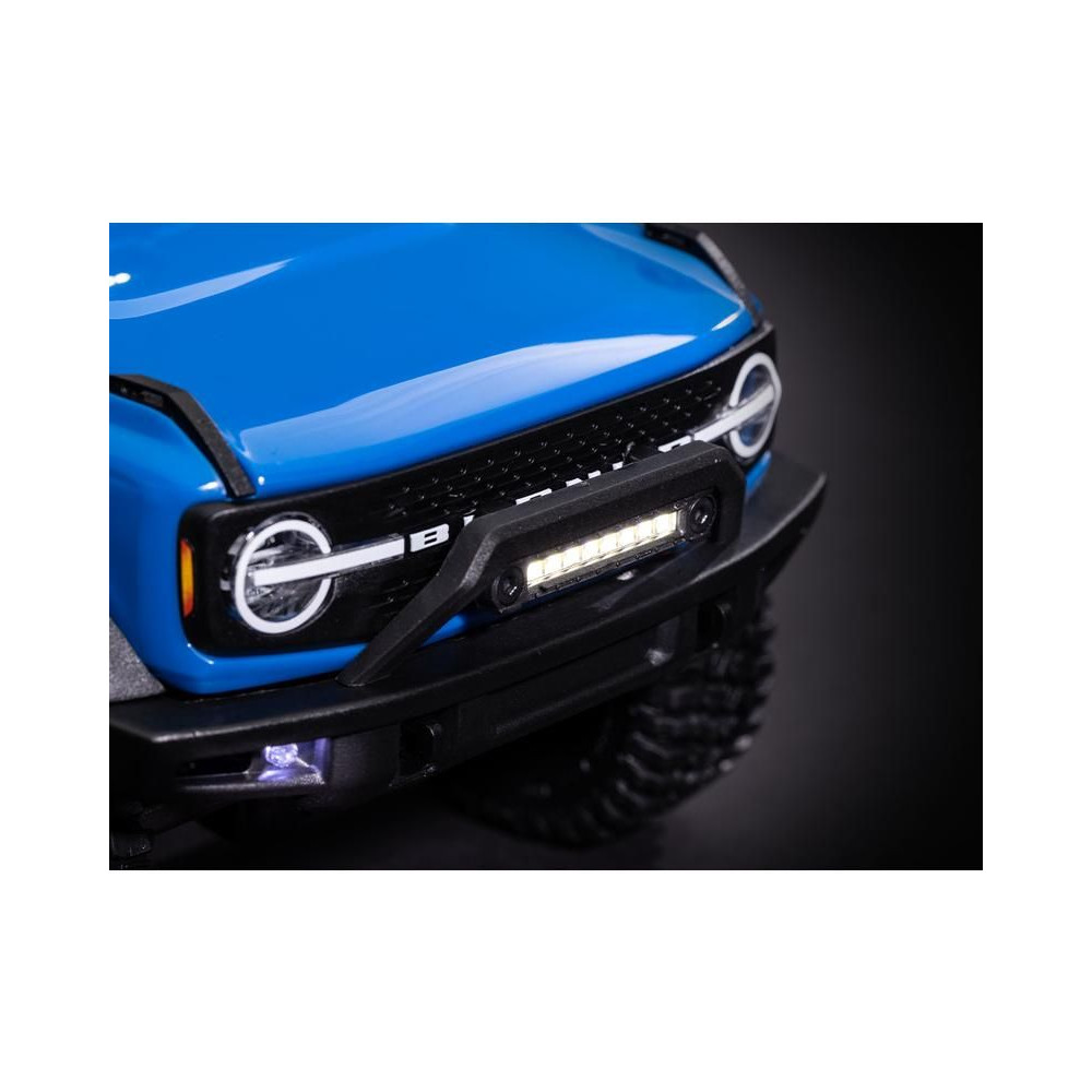 A készlet könnyen felszerelhető a Bronco és a Defender ® karosszériához és az összes rögzítő tartozékhoz mellékelt konzolokkal. A világítás vízálló*, hogy nedves környezetben is gondtalanul vezethessen. Emelje a TRX-4M-et a következő szintre ezzel a látványos kiegészítővel.