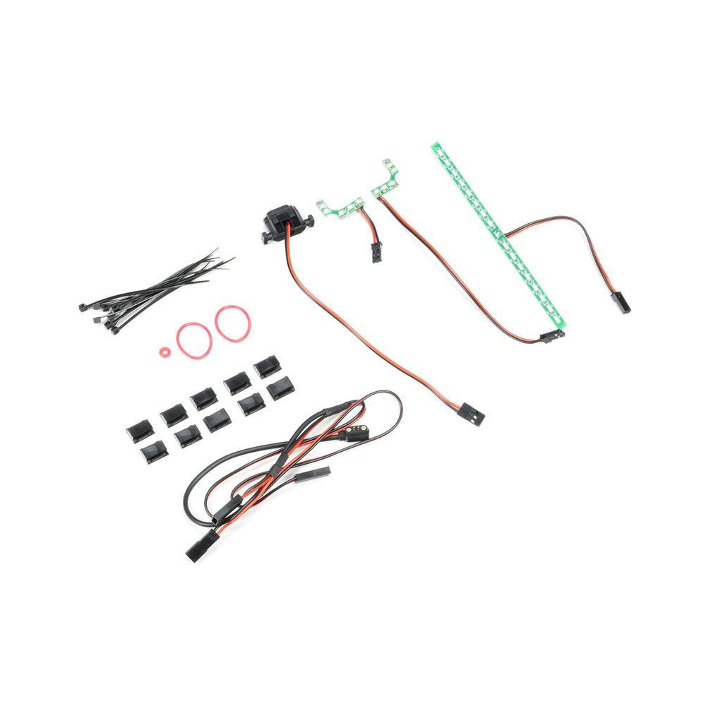 Tuning alkatrész RC autó modellekhez Arrma 1/7 BIG ROCK 6S 4X4 BLX Monster Truck RTR: világítás készlet. Tartalmazza az első és hátsó LED lámpákat, csatlakozókat és kábeleket.