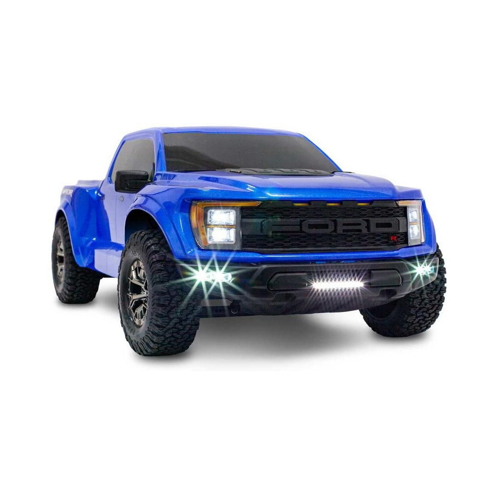 Traxxas LED-es világítás a Traxxas Ford Raptor R RC modellautóhoz. Növelje a részletgazdagságot és élvezze az esti autózást ezzel a készlettel, amely tartalmaz egy csere első lökhárítót integrált LED-es lámpasávval és a meglévő lámpákhoz való konzolokkal, négy LED-es fényszórót, tápkábelt és rögzítő csíkokat.