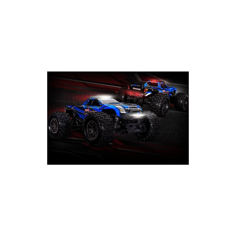 A Traxxas Mini Maxx RC autómodellel a móka naplemente után sem ér véget, köszönhetően az új, nagy teljesítményű LED-világításnak. Az eredeti készletet kifejezetten ehhez a modellhez tervezték. A nagy fényerejű LED-eket az új első és hátsó lökhárítókba, valamint a tetőkeretbe építették be. A tetőszerkezet a karosszériát is védi. A világítást a mellékelt forrás biztosítja, amely stabil megvilágítást biztosít tompulás és villódzás nélkül.
