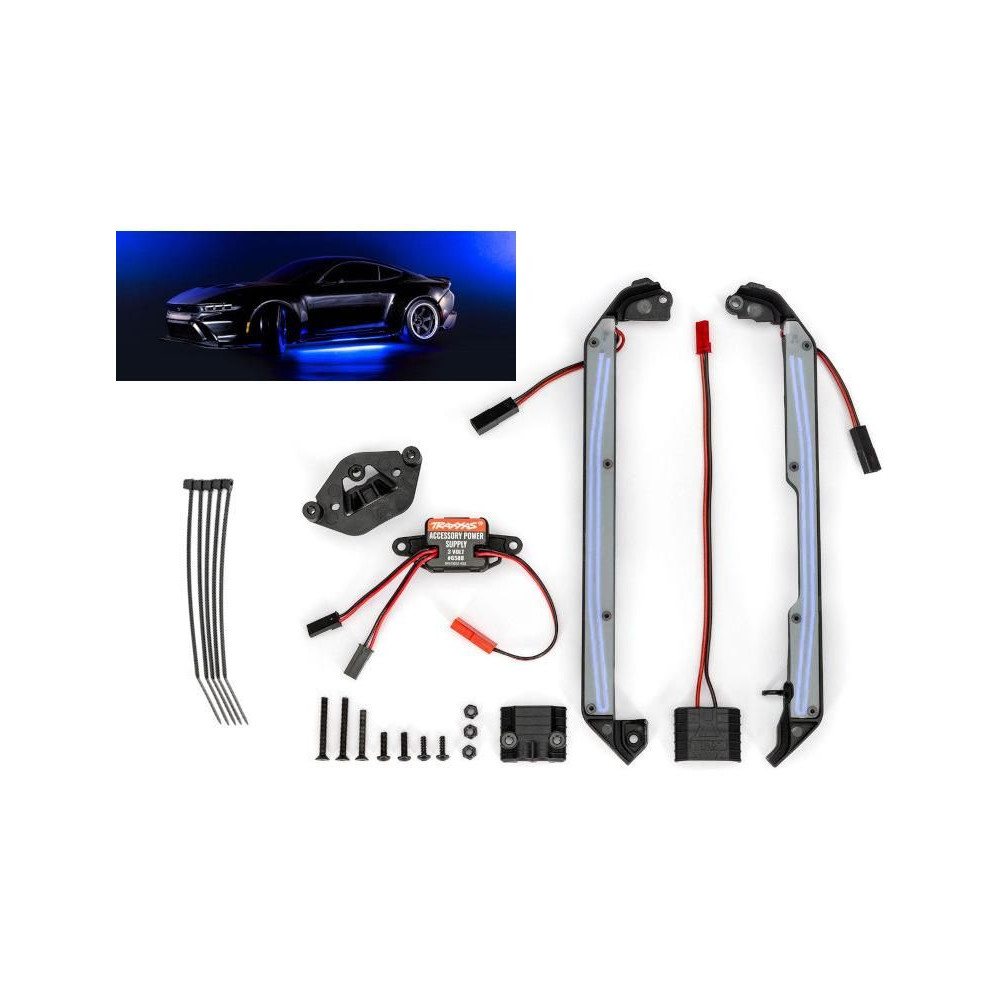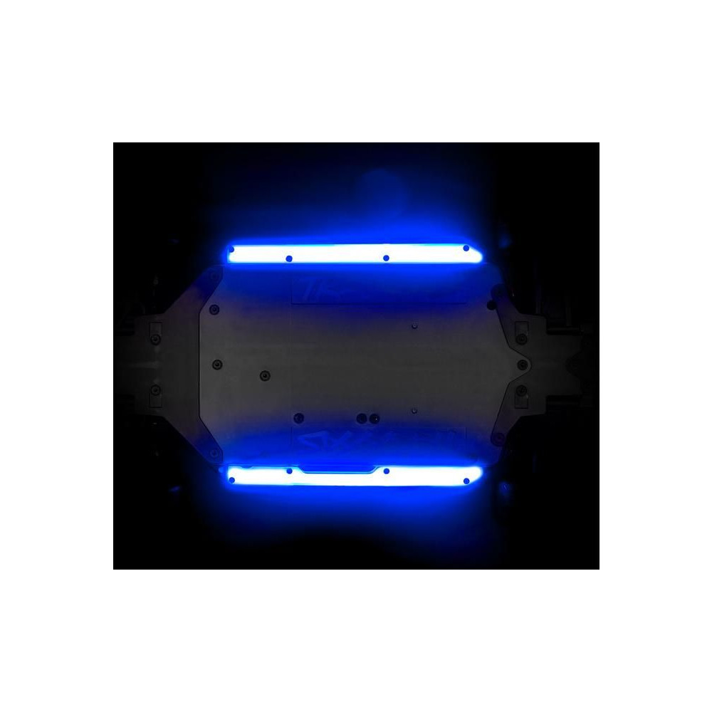 A Traxxas LED háttérvilágítású kék alváza felejthetetlen stílust kölcsönöz a Drift RC modellednek vagy más 4-Tec 2.0 alvázzal rendelkező modelleknek. Két küszöblécből álló komplett készlet háttérvilágítással, tápegységgel, csatlakozó adapterrel és szerelési tartozékokkal.