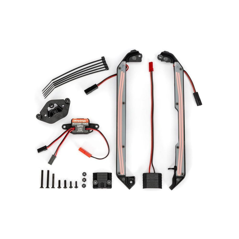 A Traxxas LED háttérvilágítású piros alváz felejthetetlen stílust kölcsönöz a Drift RC modellednek vagy más 4-Tec 2.0 alvázzal rendelkező modelleknek. Két küszöblécből álló komplett készlet háttérvilágítással, tápegységgel, csatlakozó adapterrel és szerelési tartozékokkal.
