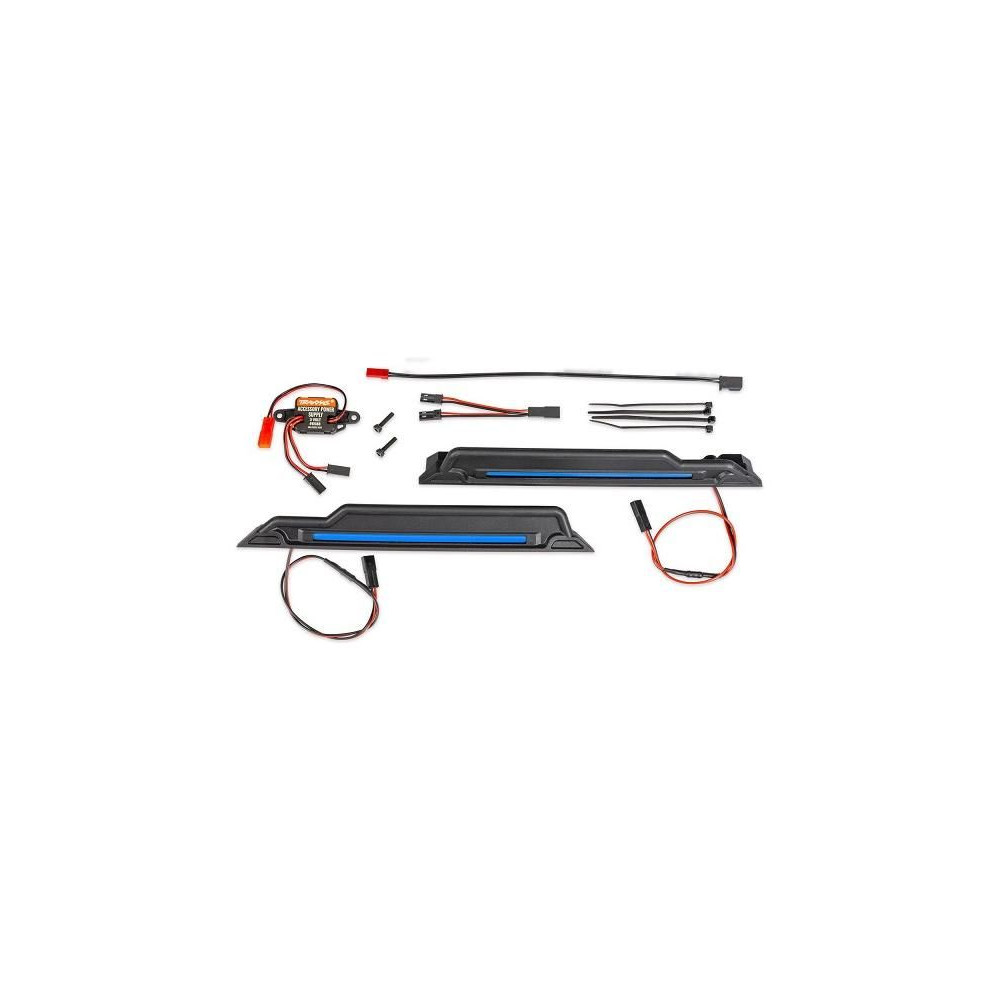 Traxxas LED háttérvilágítás kék színben Traxxas Funco-hoz, amely kiegészíti az RC modell lenyűgöző megjelenését. A Nerf oldalsó küszöblécekbe integrált színes LED-világítás stílusosan megvilágítja a modell alatti utat. A csomag tartalmaz egy 3V-os tápegységet és szerelési tartozékokat.