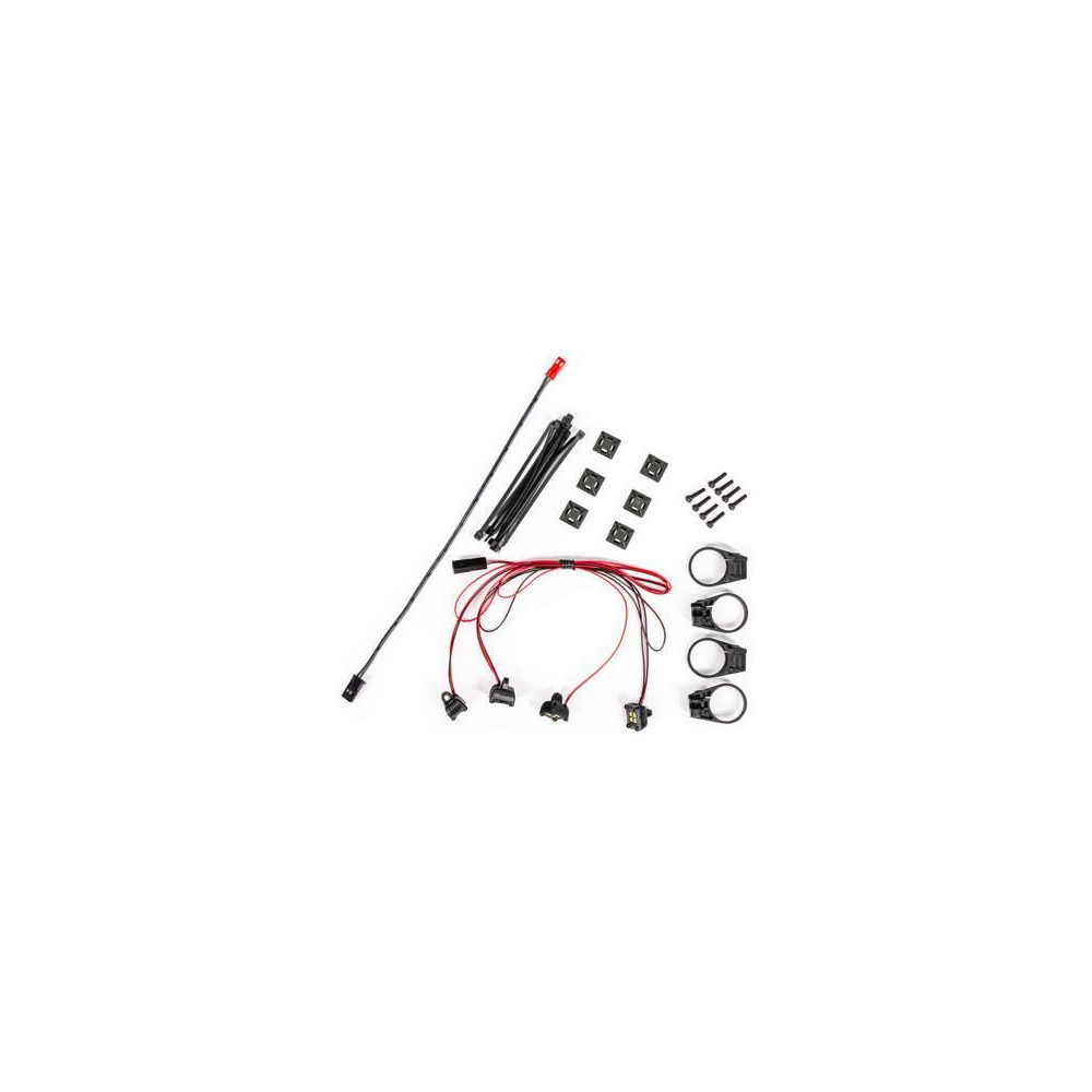 Traxxas LED háttérvilágítás / kipufogódob világítás Traxxas Funco-hoz, amely kiegészíti az RC modell lenyűgöző megjelenését. Négy fehér LED-es lámpa van rögzítve egy konzol segítségével a hangtompítókhoz. A világításhoz 3V-os TRA6588X tápegység szükséges (nem része a csomagnak).
