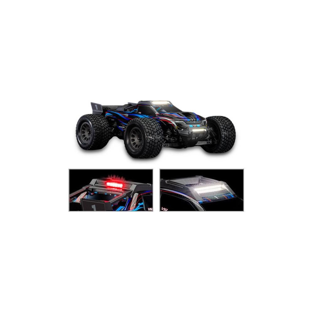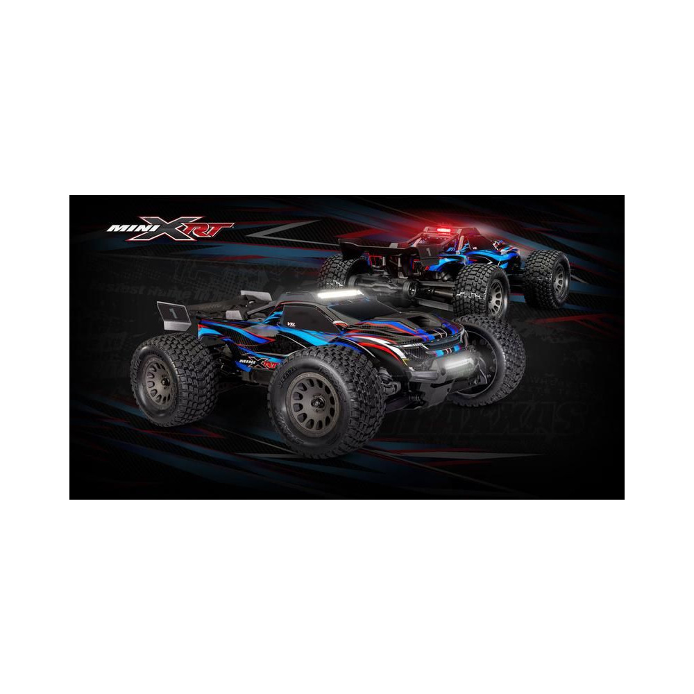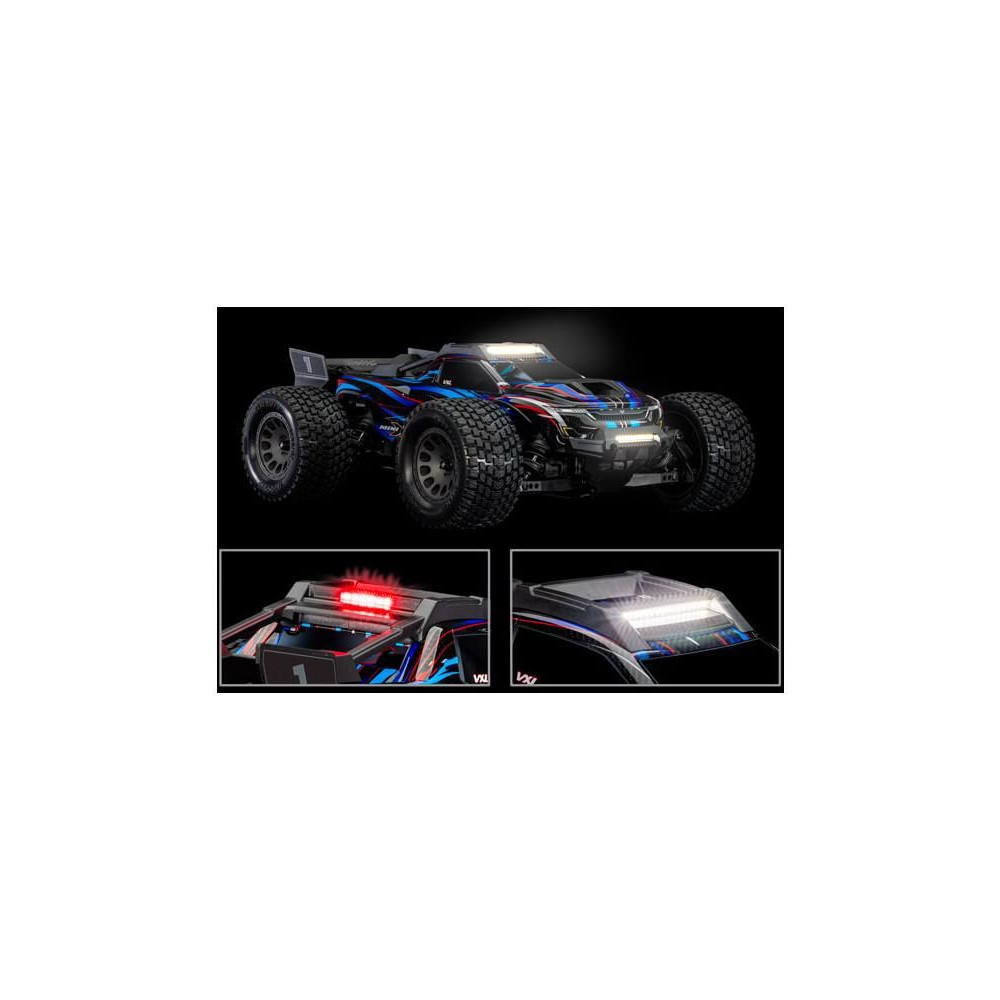A Traxxas Mini XRT RC autómodellel a móka naplemente után sem ér véget az új, nagy teljesítményű LED-világításnak köszönhetően. Az eredeti készletet kifejezetten ehhez a modellhez tervezték. A nagy fényerejű LED-ek az új első lökhárítóba és a tetőkeretbe vannak integrálva. A tetőszerkezet a karosszériát is védi. A világítást a mellékelt forrás biztosítja, amely stabil megvilágítást biztosít tompulás és villódzás nélkül.