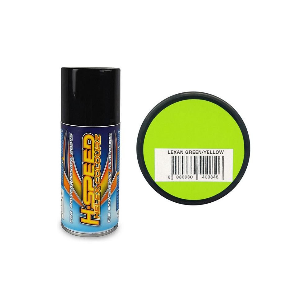 A H-Speed zöld-sárga akril sprayfesték számos anyaghoz, többek között lexán karosszériához is használható. Előnyei a rövid száradási idő, a kiváló fedés és a karcállóság. Tartalom 150 ml.