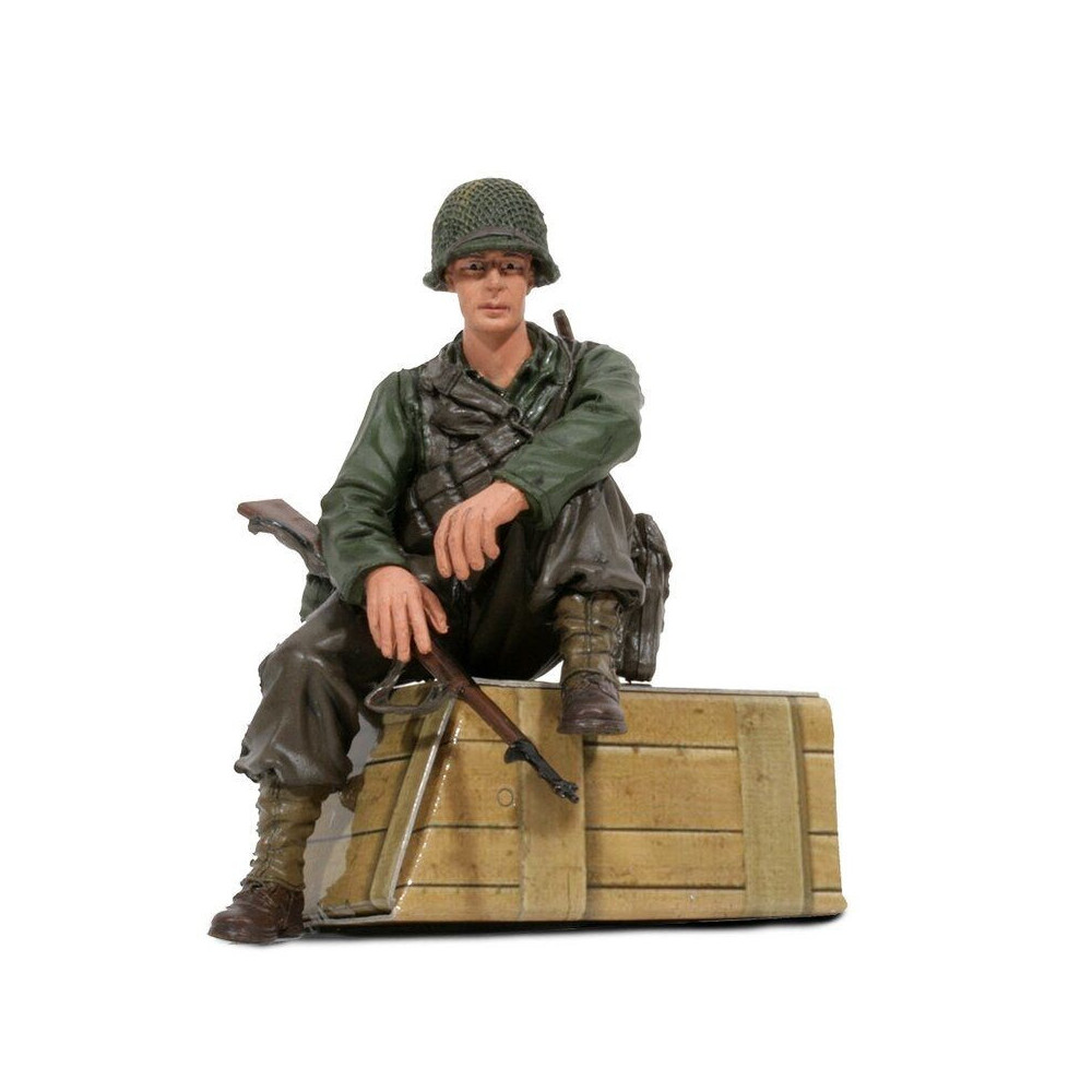 - 1/16-os méretarányú figura egy ülő amerikai 1. gyalogsági katonáról.