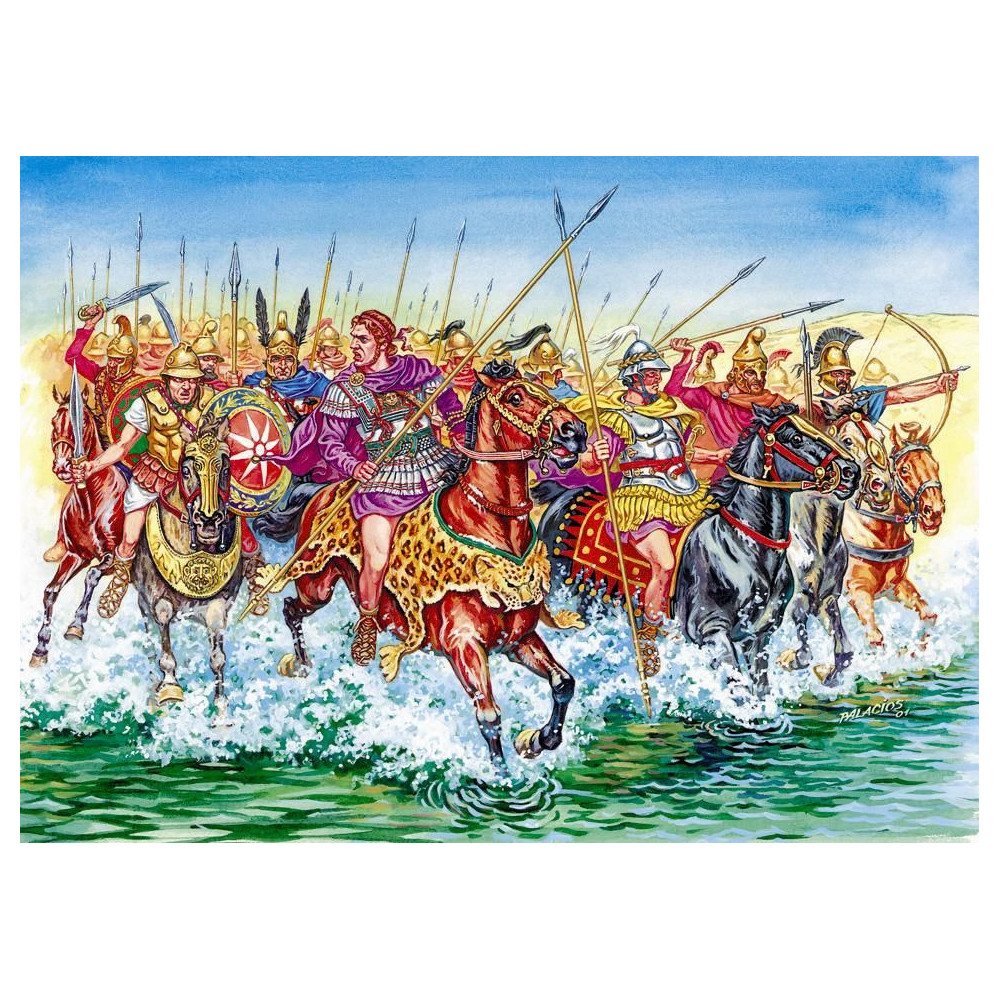Ez a készlet makedón és görög lovasságot tartalmaz Nagy Sándor csatáitól az európai és nyugat-ázsiai hellenisztikus nemzetek római hódításáig.