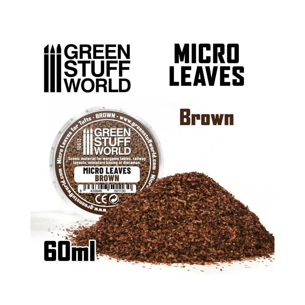 A Micro Leaves egy nagyon finomra vágott speciális flocking anyag. Úgy tervezték őket, hogy megtévesztően realisztikus, levelekre emlékeztető formájuk legyen.
