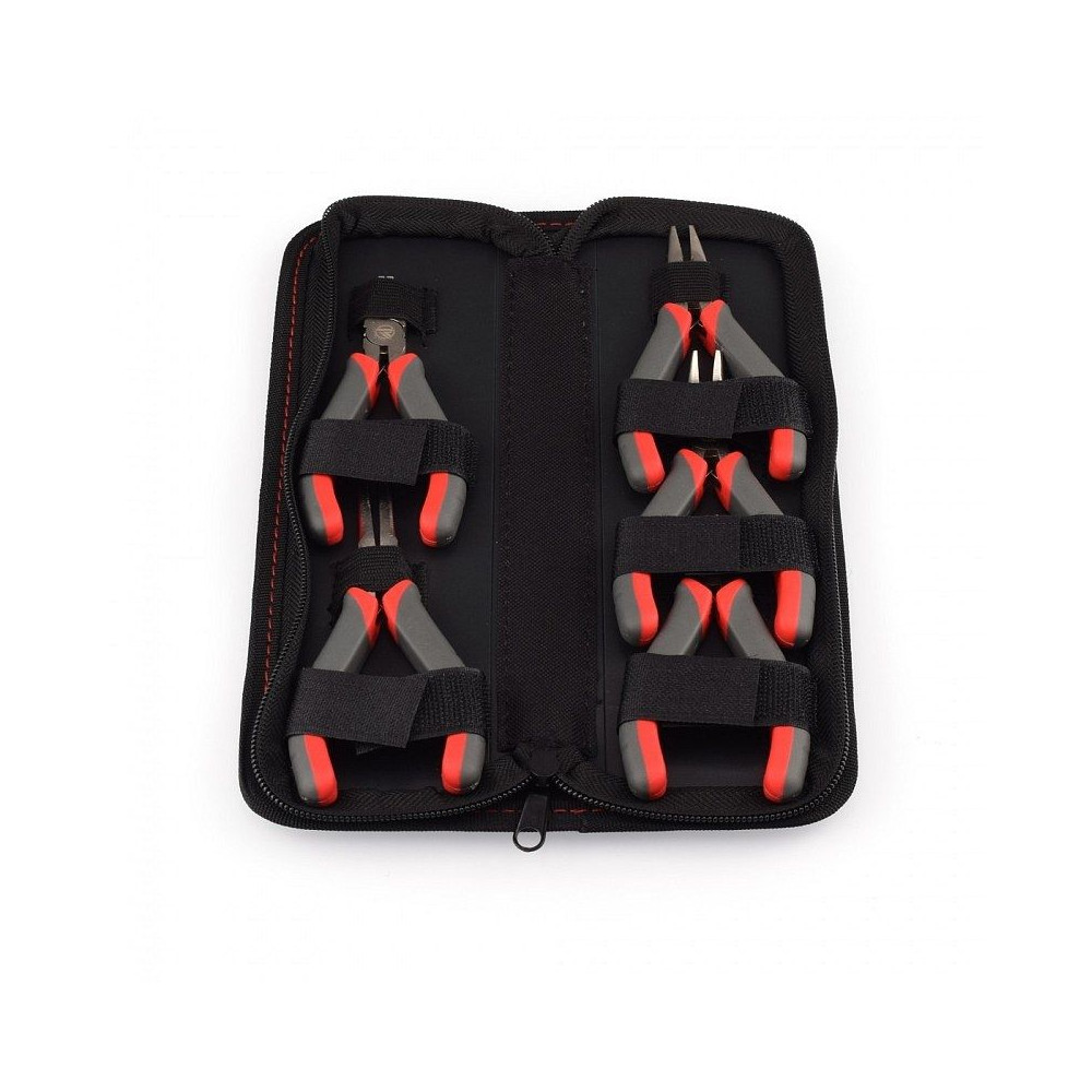 A RUDDOG Micro fogókészlet praktikus kiegészítője a Ruddog Products szerszámkínálatának, amely gyakorlatilag az RC modellezés minden általános felhasználási területét lefedi. A készlet tartalmaz egyenes és hajlított lapos orrú fogót, lapos kerek orrú fogót, kombinált fogót és oldalvágót. A fogók biztonságosan tárolhatók egy praktikus Ruddog logóval ellátott hordtáskában, amelynek további biztonságát egy kampós és hurkos pánt biztosítja.