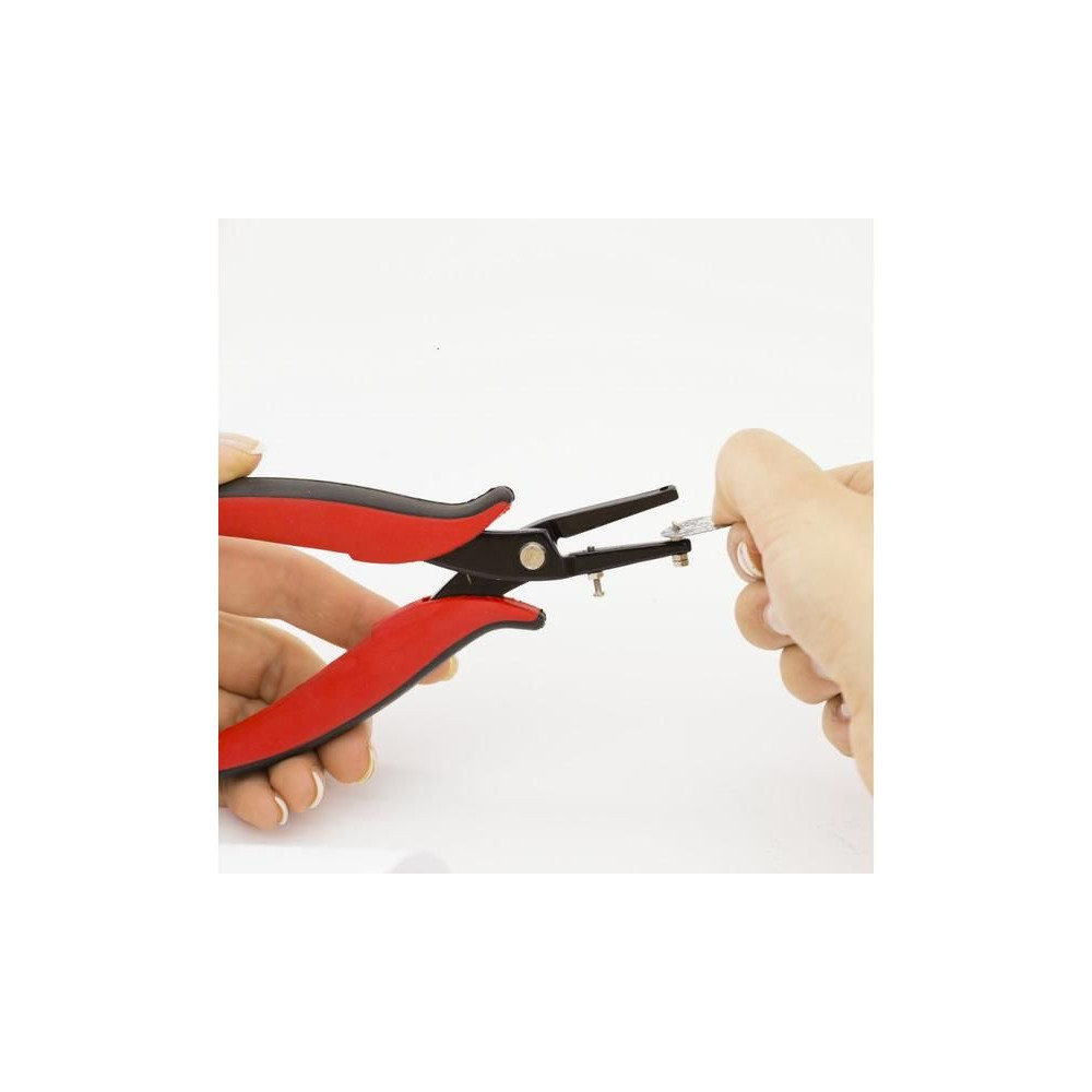 A Jeweltool lyukasztó fogó tiszta és pontos lyukakat vág textilbe, műanyagba vagy vékony alumíniumba. Ideális ékszerkészítéshez, könnyen használható, akár egy övön, akár egy ékszeren kell lyukakat készítenie. Kényelmes, párnázott fogantyúval a lyukasztó fogó mindenkinek jól áll a kezében.