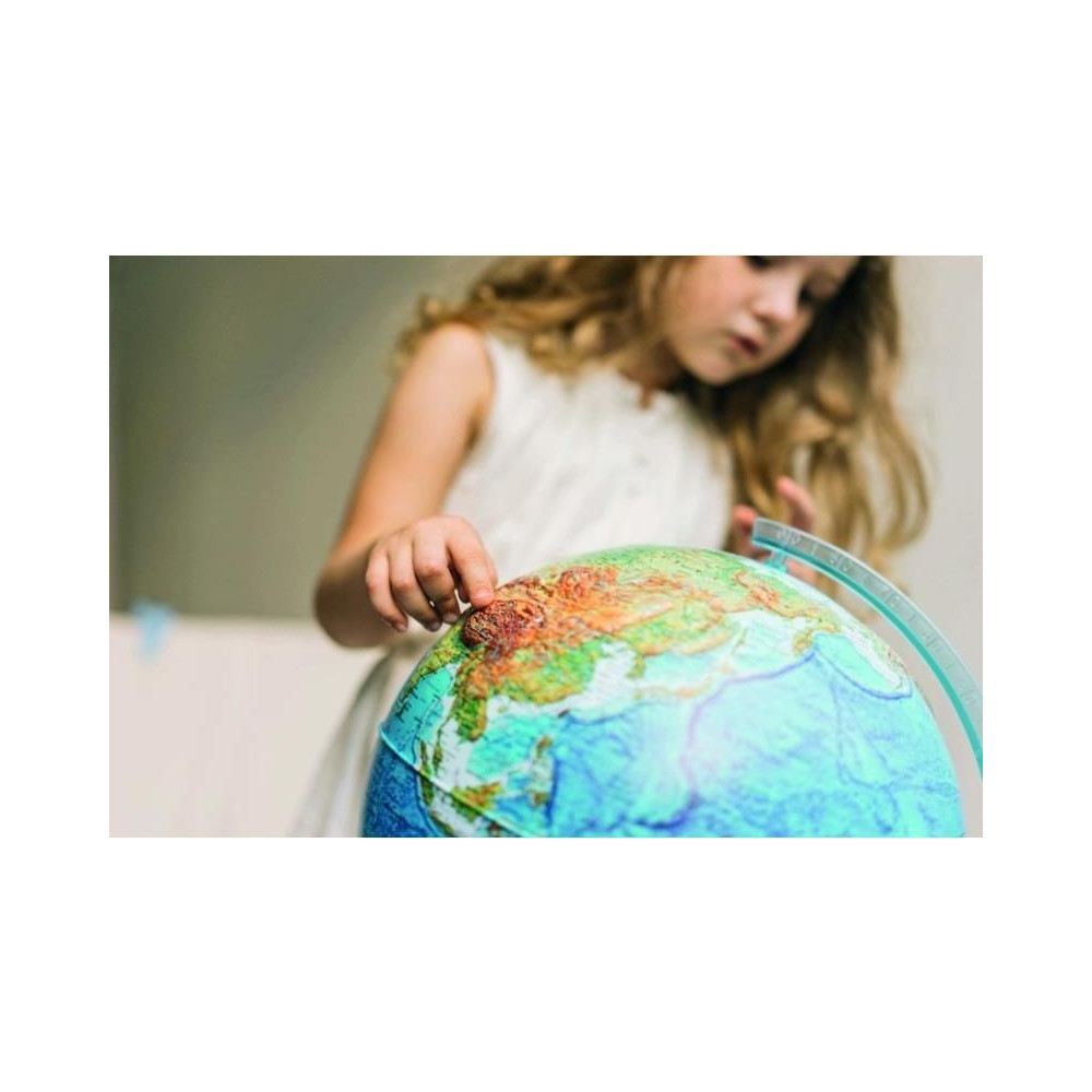 A földgömb térképe világos, jól olvasható és a kartográfia követelményeinek szigorúan megfelelően készült. A földgömbök a legmagasabb oktatási és játékértékkel bírnak az iskolások számára, akik a domborzatnak köszönhetően könnyen megérthetik a Föld szerkezetét. A dombornyomásos földgömb emellett jól néz ki, és remekül mutat egy asztalon vagy polcon.