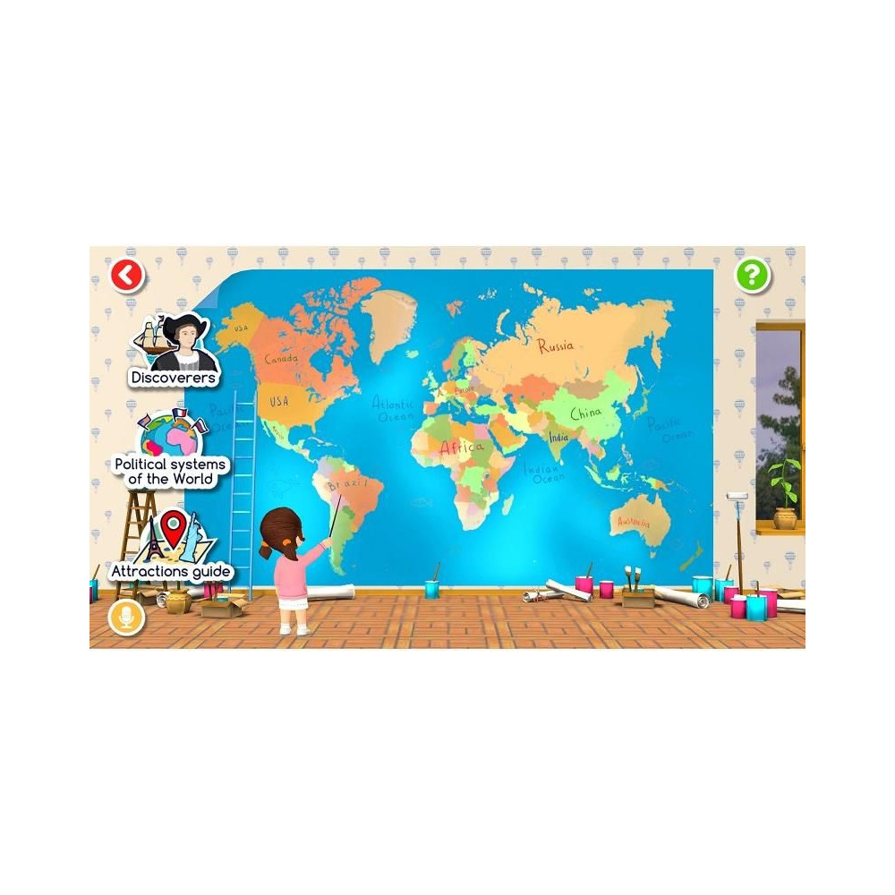 A letisztult grafikájú alkalmazásban 9 téma közül választhatunk: állat- és növényvilág, űrközpontok, naprendszer, tengeri világ, politikai rendszer, nevezetességek, természeti emlékek, űr, felfedezők. A témák a földgömbön jelennek meg, és ha például egy állatra kattintasz, megjelenik a neve és 3D modellje. Hangos kommentár is rendelkezésre áll.
