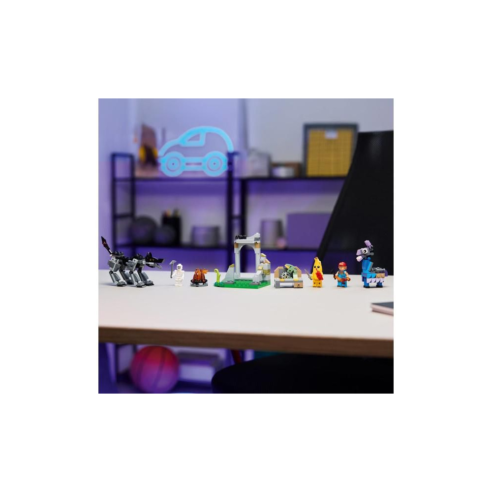 A készletet a LEGO Fortnite Odyssey videojátékban a játékosok által először tapasztalt kihívások ihlették. A fiúk és a lányok egyaránt jól szórakozhatnak egy kemping, egy munkapad és egy szétszedhető és újjáépíthető törmelék megépítésével. Található benne egy Ellátási Láma figura és egy mozgatható farkú és lábú farkasfigura. A készletek életre keltik Peely, Sparkplug és csontváz minifiguráit, fegyverkiegészítőkkel kiegészítve, és kreatív játékra ösztönöznek.