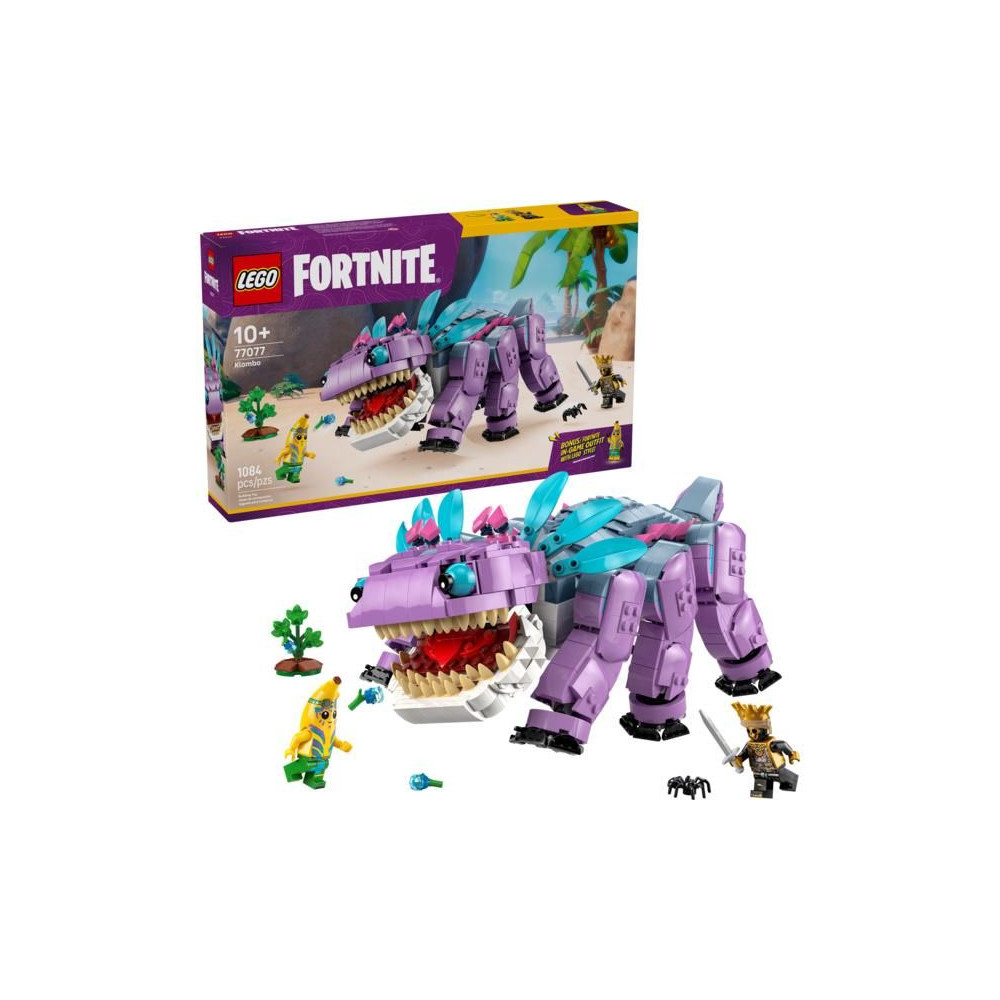 Klombo egy hatalmas teremtmény a LEGO Fortnite videojátékból, és ennek a készletnek köszönhetően lányok és fiúk egyaránt megépíthetik LEGO kockákból. A gyerekek rengeteg mókát fognak átélni a Fortnite videojáték alapján készült modell megépítése során, és felfedezhetik az összes klassz részletét, beleértve a mozgatható lábakat, a nyitható szájat és a forgó farkat. A készlet tartalmaz egy kis Klomb bokrot is levehető Klomb bogyókkal. A gyerekek így játszhatnak azzal, hogy megzavarják Klombot, hogy az dühbe gurul, majd gyümölccsel etethetik, hogy örömet szerezzenek neki. A készlet tartalmazza Peely és Oro Island Adventure minifiguráit is, amelyek Klomb hátára rögzíthetők a kreatív karakterjátékhoz.