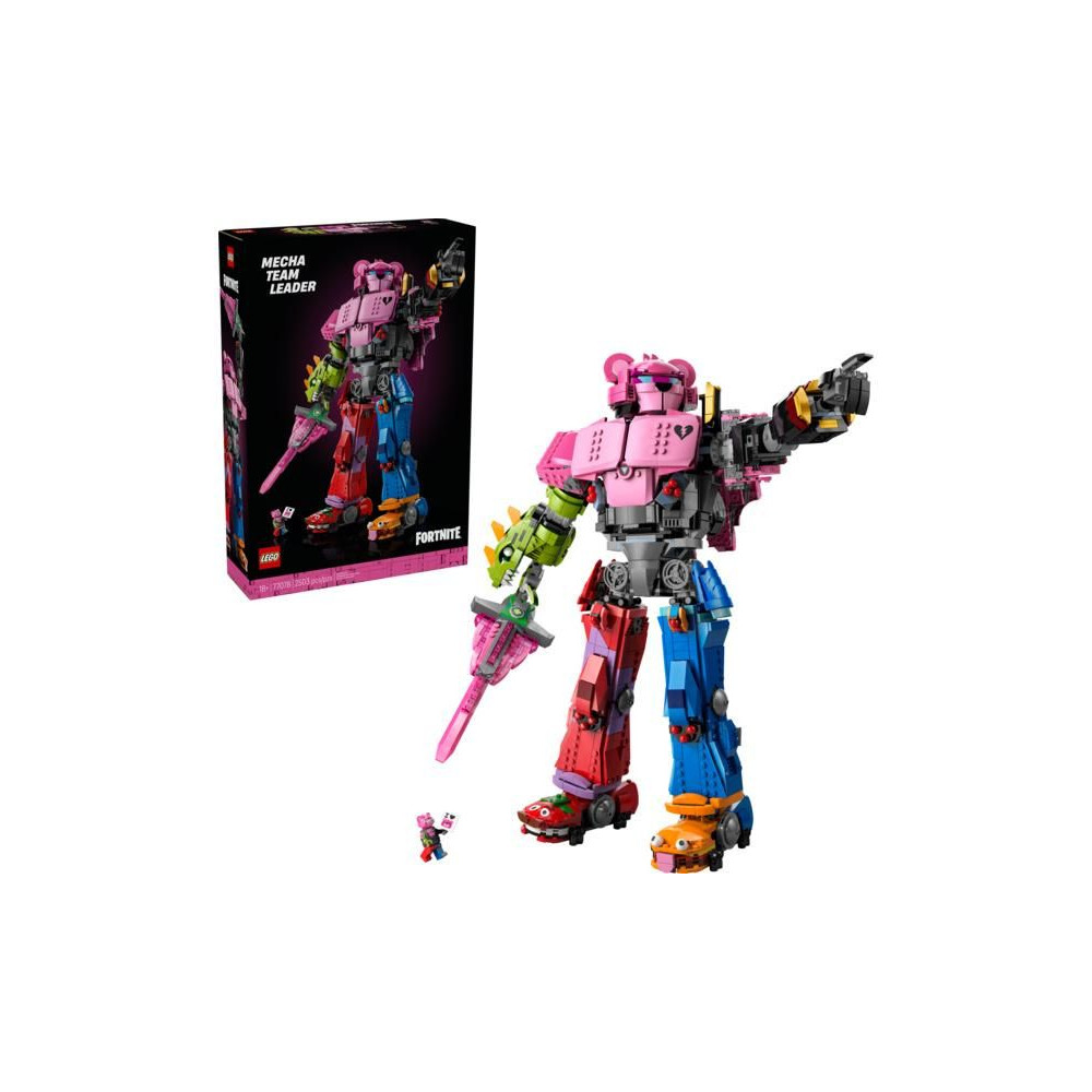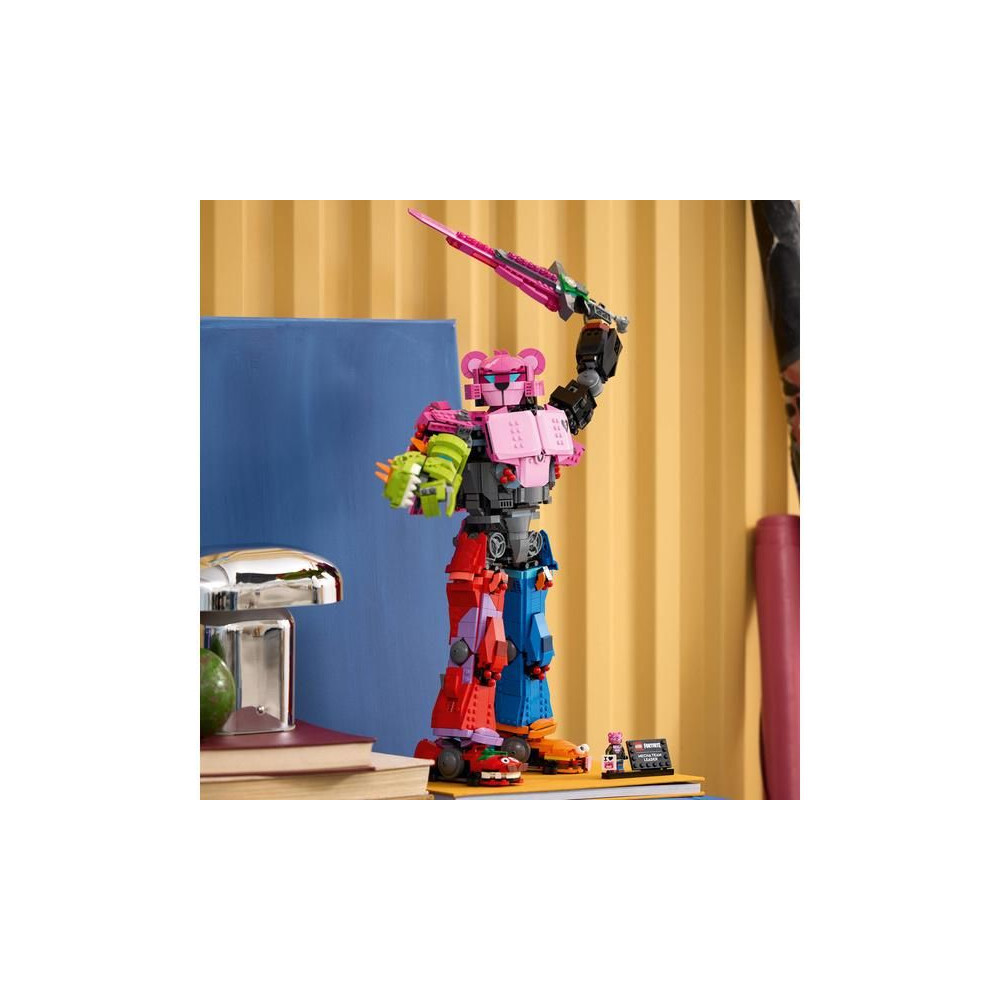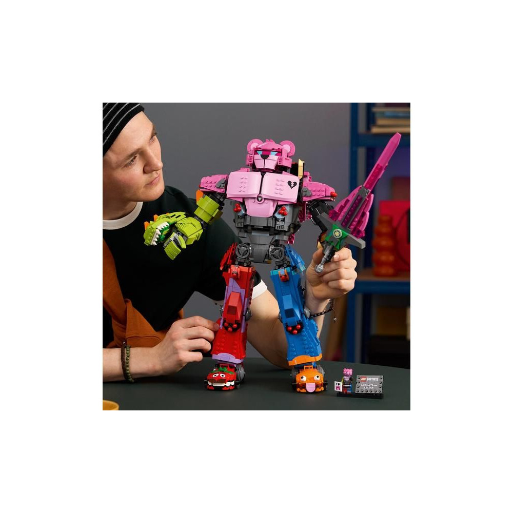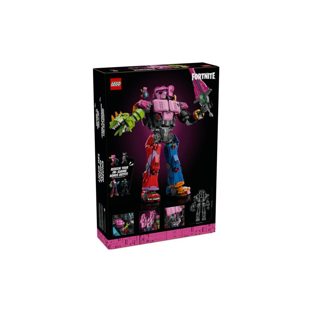 - Digitális bónusz – Ez a gyűjtői készlet digitális bónusz tárgyakat tartalmaz: Mecha csapatvezető öltözéket és Mecha csapatárnyék öltözéket, amelyek a LEGO® Fortnite® és a Fortnite játékokban oldhatók fel.