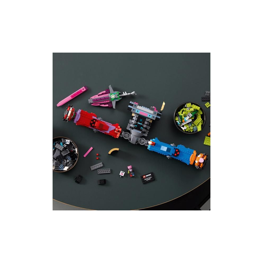 Ez a készlet gyönyörű ajándék lehet a LEGO Fortnite játékosok és rajongók számára, és összeszerelés után garantáltan minden vendéget lenyűgöz majd. A készlet digitális bónusz tárgyakat is tartalmaz: Mecha csapatvezető skin és Mecha csapatárnyék skin, amelyek a LEGO Fortnite és a Fortnite játékokban oldhatók fel, így a móka a modell megépítése után sem ér véget! A készlet 2503 alkatrészt tartalmaz.
