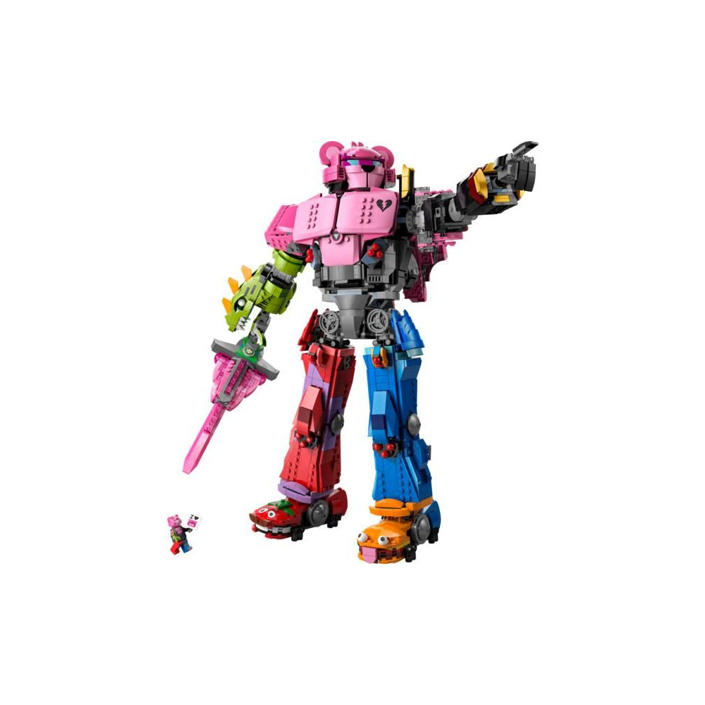 Élvezd az immerzív építési projektet, és alkoss egy videojáték-robot figurát, amely megmentette a Fortnite Battle Royale 1. fejezet szigetét. A robot beállítható, így különböző pozíciókba állíthatod, és beállíthatod a csípőjét, karjait, lábait és fejét. Egy kard is található a készletben. A készletben egy ugyanabból a karakterből készült minifigurát is találsz, amelyet a figura mellkasának pilótafülkéjében, a vezetőülésbe helyezhetsz.