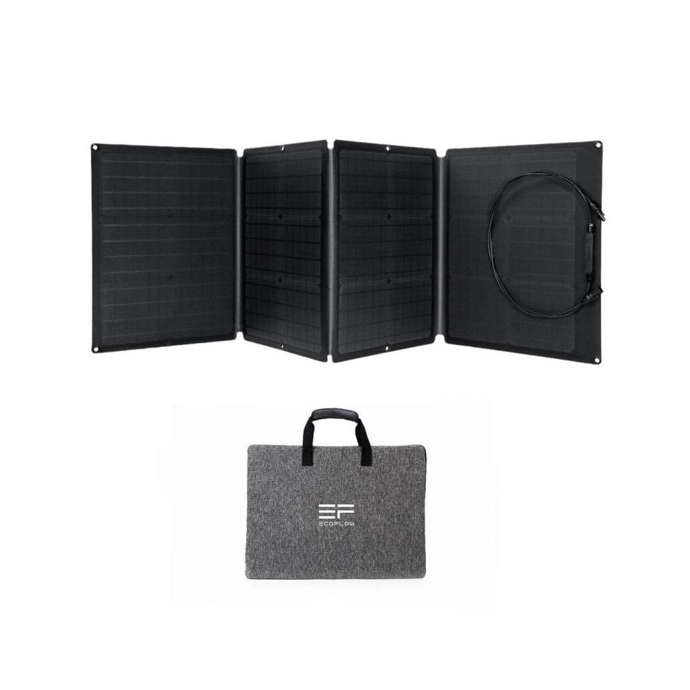 Napelem - nagy hatékonyságú monokristályos szilíciumcellák, 110 W teljesítmény, vízálló, összecsukható és pozicionálható. Az EcoFlow 110 W-os napelemmel nem kell aggódnia olyan helyek miatt, ahol nincs konnektor. A panel nagy hatásfokkal rendelkezik, és a hatékony monokristályos szilíciumcelláknak köszönhetően kényelmesen feltöltheti az EcoFlow akkumulátorállomásokat.