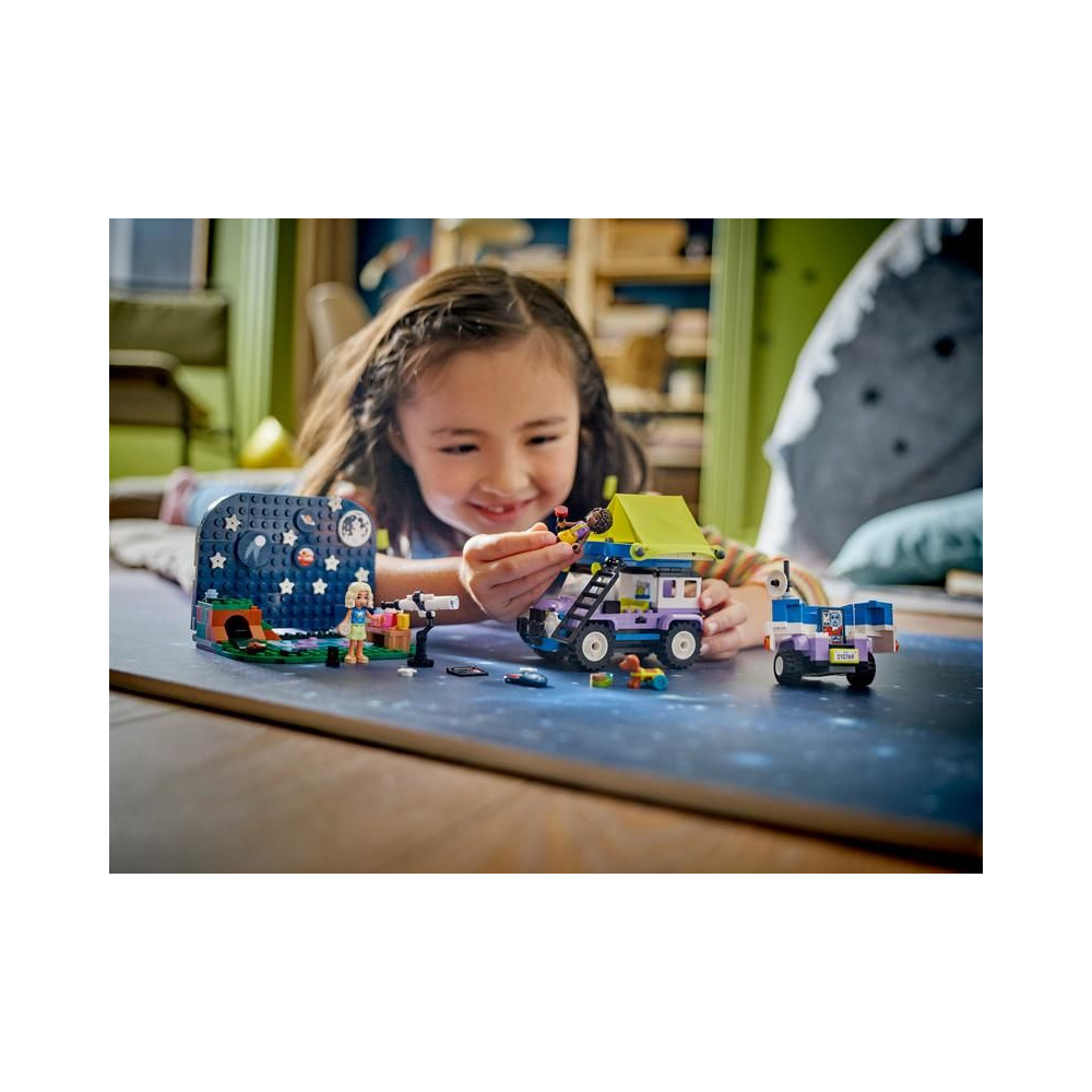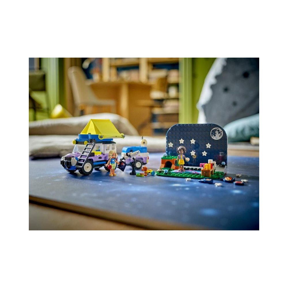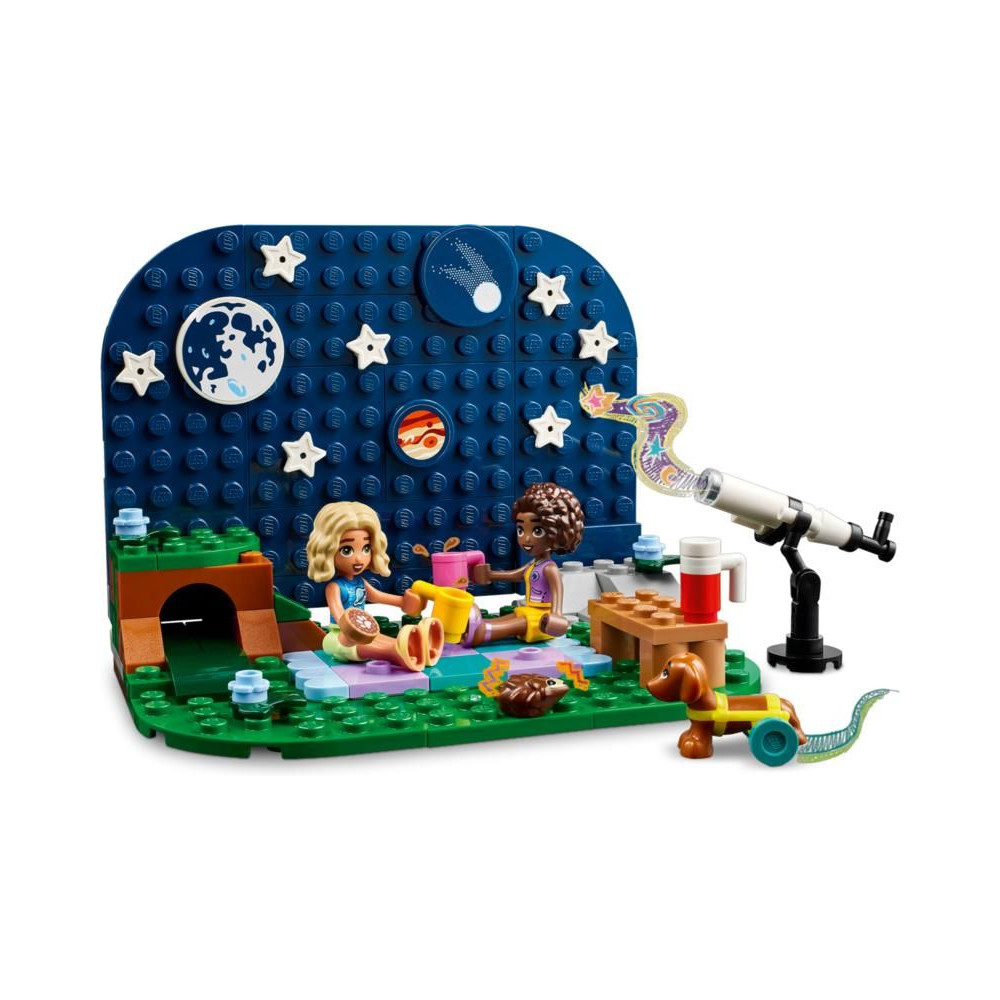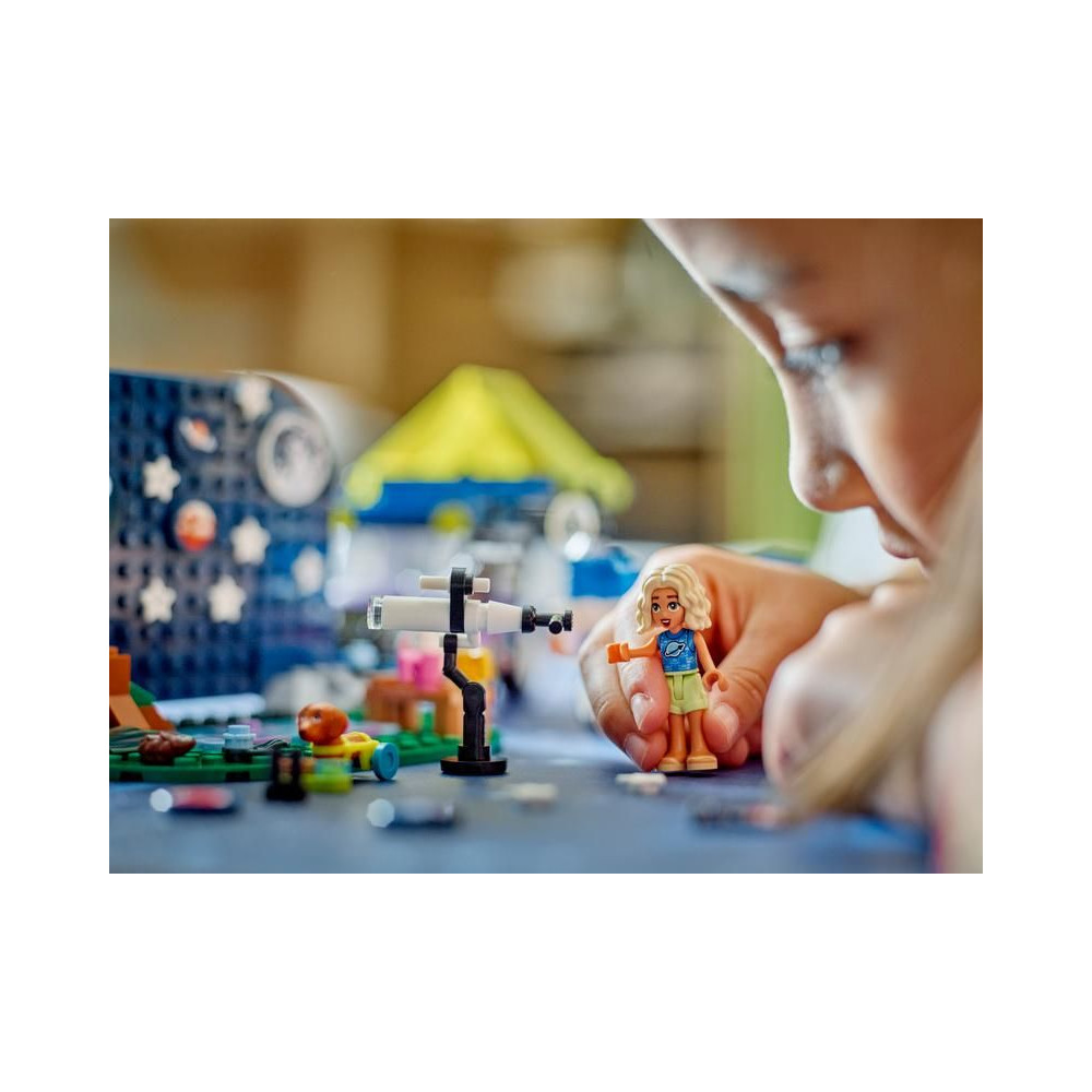 A LEGO® Friends Csillagleső lakókocsi tartalmaz egy építhető 4x4-es járművet, teleszkópot, kiegészítőket és 3 LEGO Friends figurát.