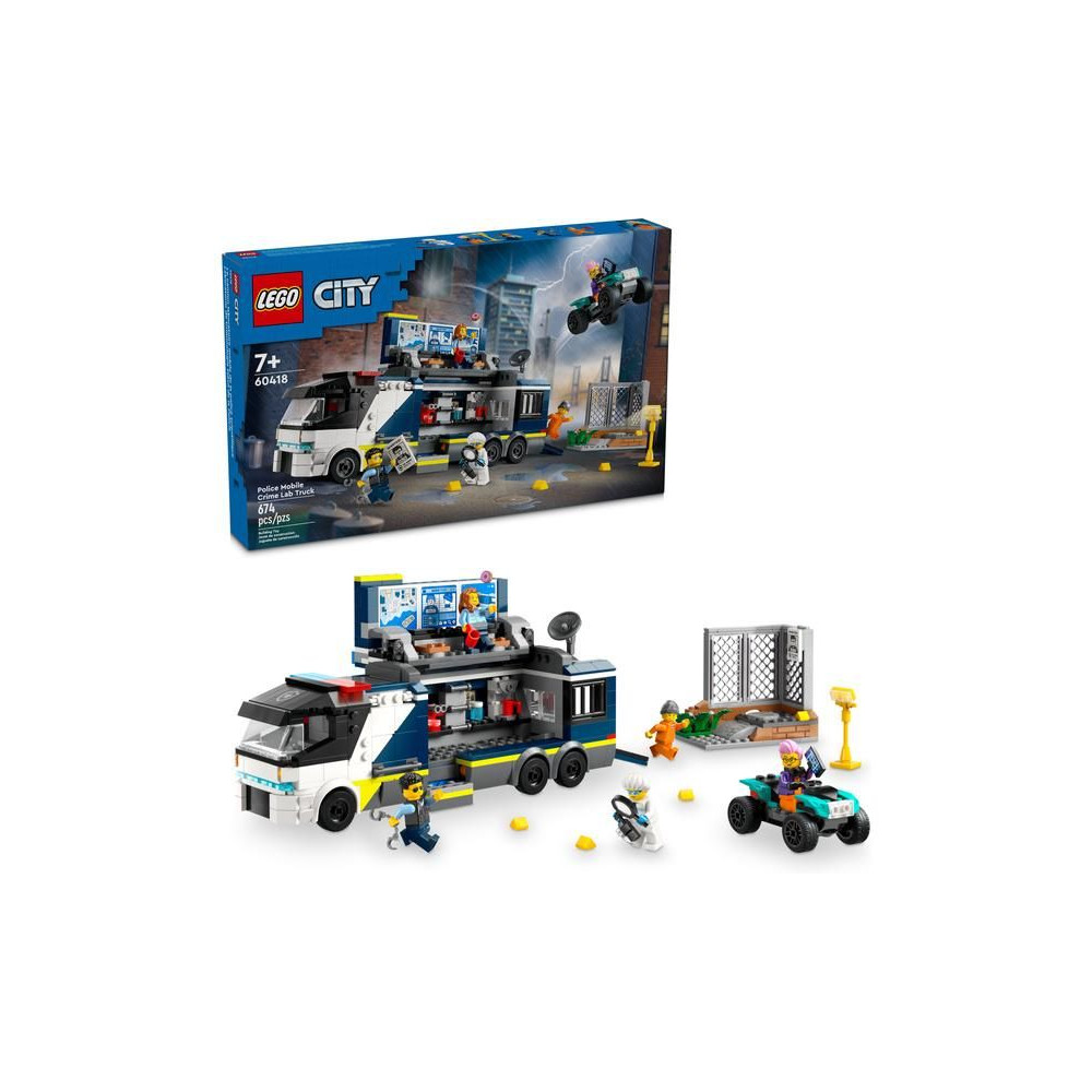 A menekülő bűnözők által hátrahagyott nyomok felderítése a 60418 LEGO® City Mobile Police Crime Lab rendőrök feladata. Ez a 7 éves kortól nagyszerű játékkészlet egy teherautót tartalmaz, amely kinyílik, és egy kétszintes bűnügyi helyszínelő laboratóriumot tár fel munkaállomásokkal, térképpel, monitorokkal, mikroszkóppal, kávéfőzővel és börtönnel. A készlet tartalmaz egy helyszínelő helyszínt és egy bűnözőkből álló négyest is. Az igazán epikus kalandokhoz csak add hozzá a 2 rendőr, 1 tudós és 2 bűnöző minifiguráját.