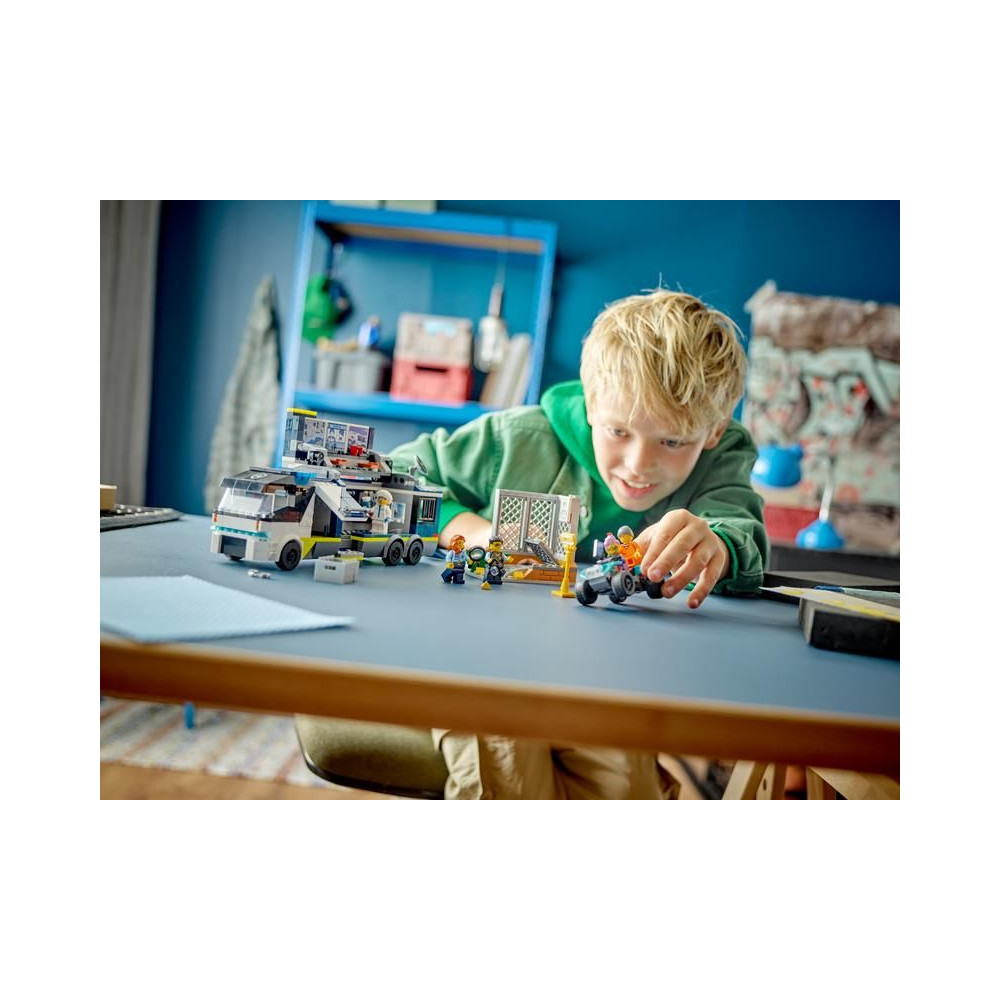- CSI rendőrségi játékjármű - A játék neve, amikor szökött bűnözők nyomára bukkansz a LEGO® City játékkészlet Mobil rendőrségi bűnügyi laborral a 7 éves és idősebb kezdő törvényszéki szakértők számára.