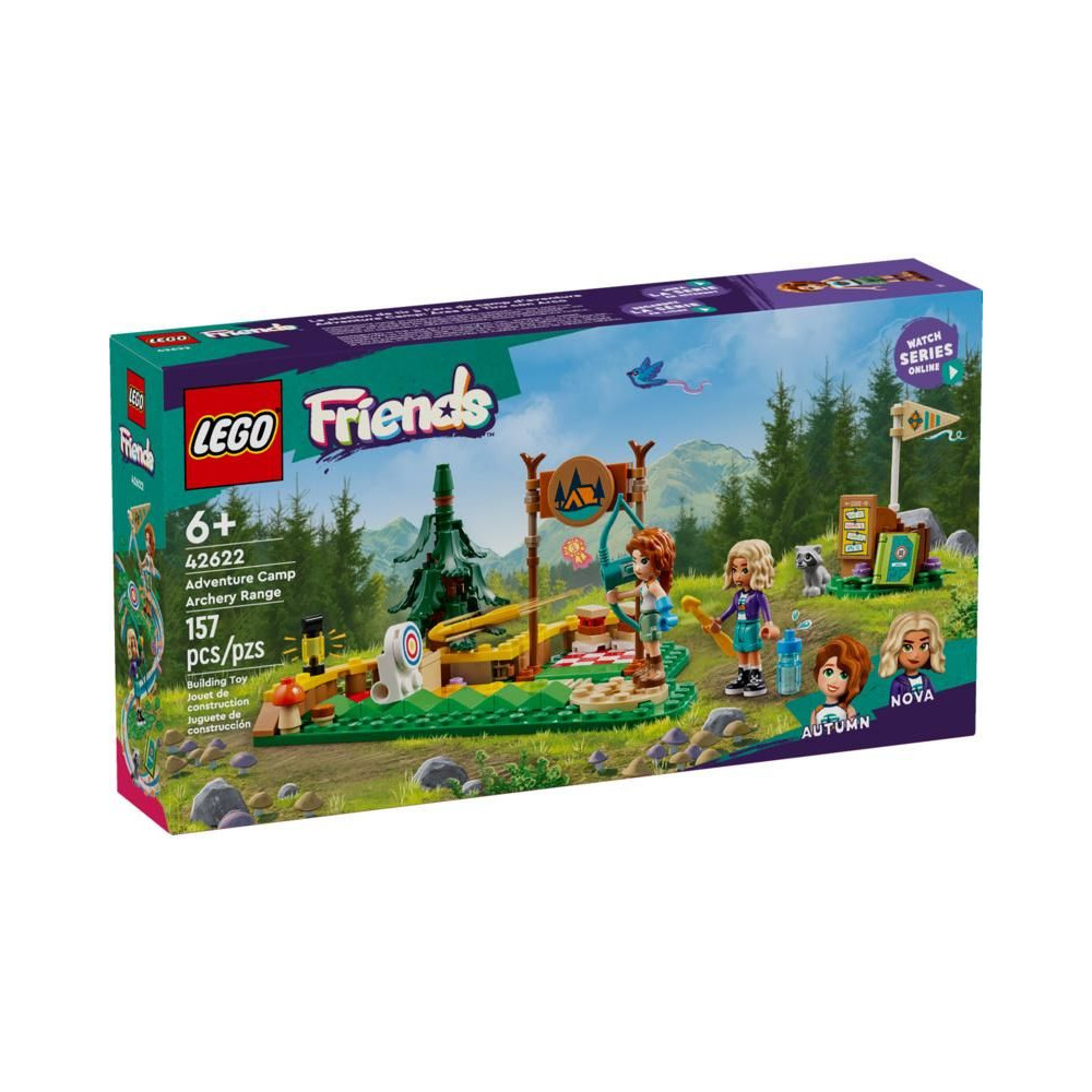 A LEGO® Friends (42622) íjászpálya a Kalandtáborban 6 éves kortól tartalmaz Autumn és Novy mini serpenyőket, egy mosómedvét és rengeteg sportos kiegészítőt. A lányok és fiúk gyakorolhatják a célba lövést ezzel az izgalmas készlettel, mert az íj valóban nyilakat lő ki. Nézd meg, hogyan fordul el a céltábla, amikor a nyíl eltalálja! Színkódolt nehézségi skála van, így a gyerekek továbblökhetik a célt, és nehezebb kihívásokkal próbálkozhatnak.