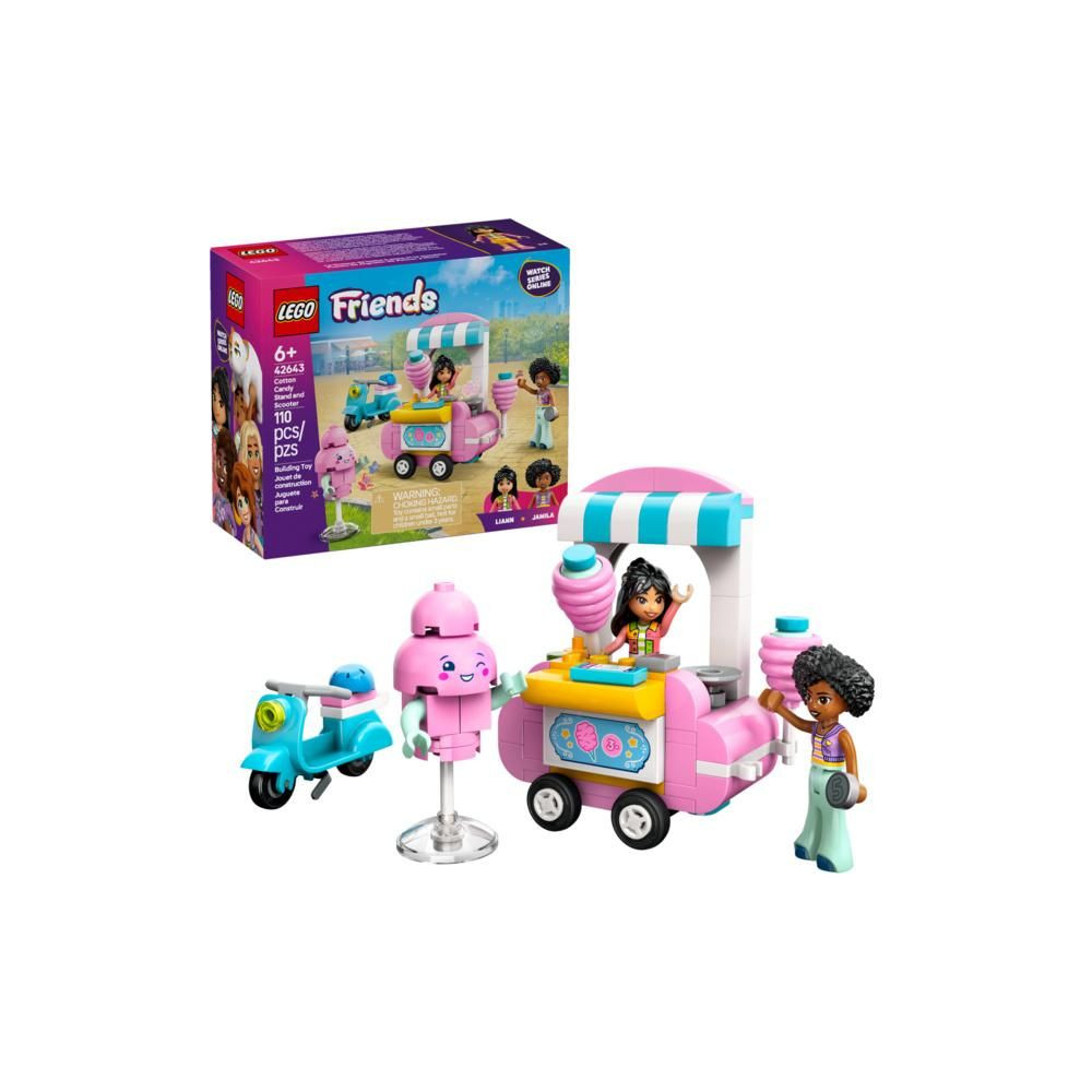 Inspiráld a 6 éves vagy annál idősebb gyermekeket az édes játékra a LEGO® Friends (42643) Vattacukor Állvány és Roller segítségével. A készlet 2 LEGO Friends minibabát, egy összerakható mobil food truckot, robogót, kabalafigurát és kiegészítőket tartalmaz.