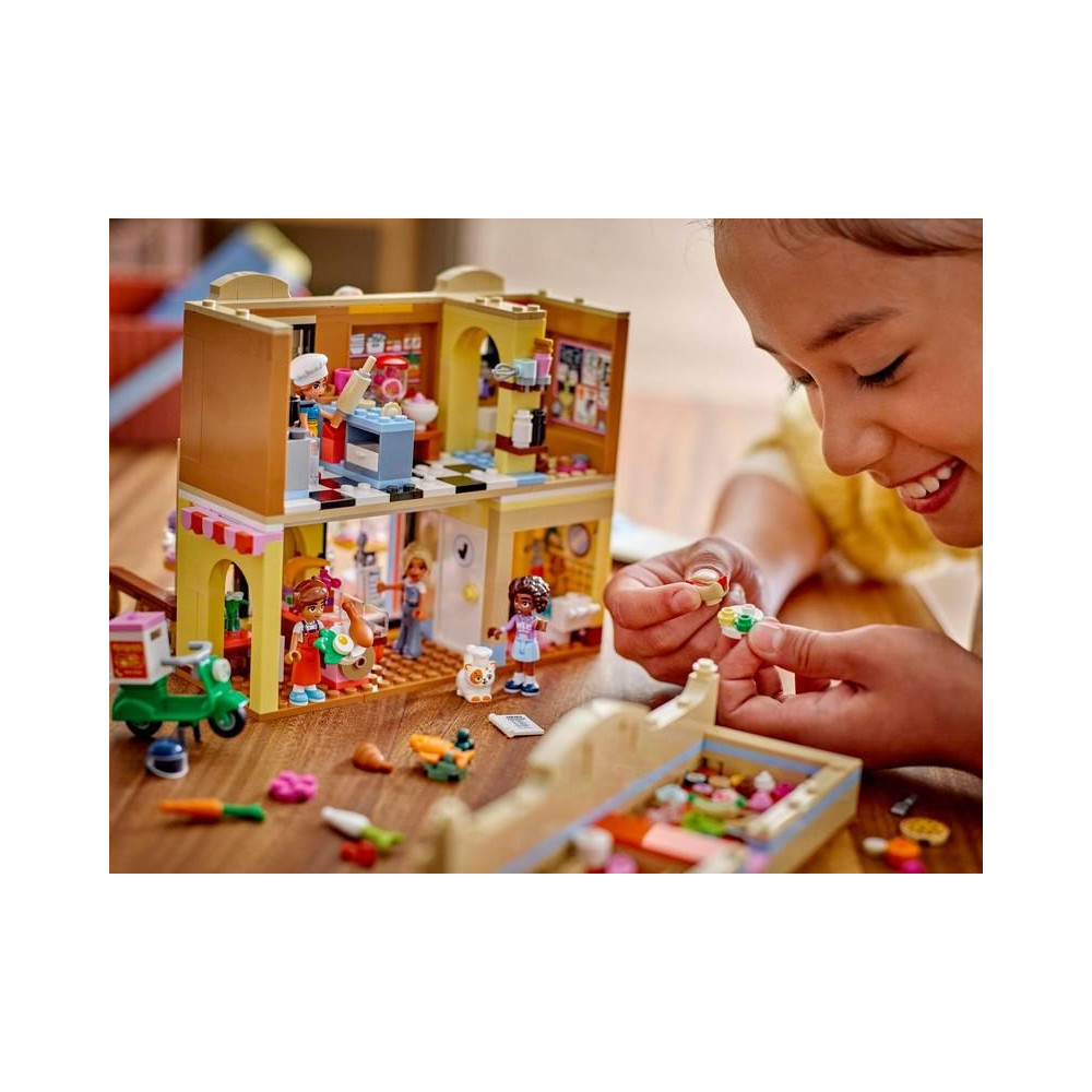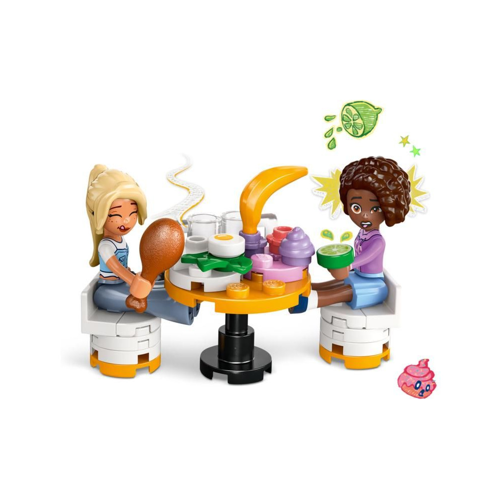 A 8 éves és annál idősebb gyermekeknek szánt LEGO® Friends Étterem és Főzőiskola építőkészlettel a kis ínyencek elkezdhetnek ételeket kitalálni. Sok ételdarabot, 4 minibabát és egy robogót tartalmaz.