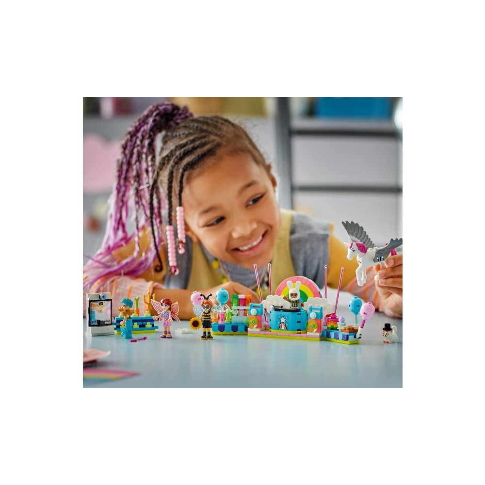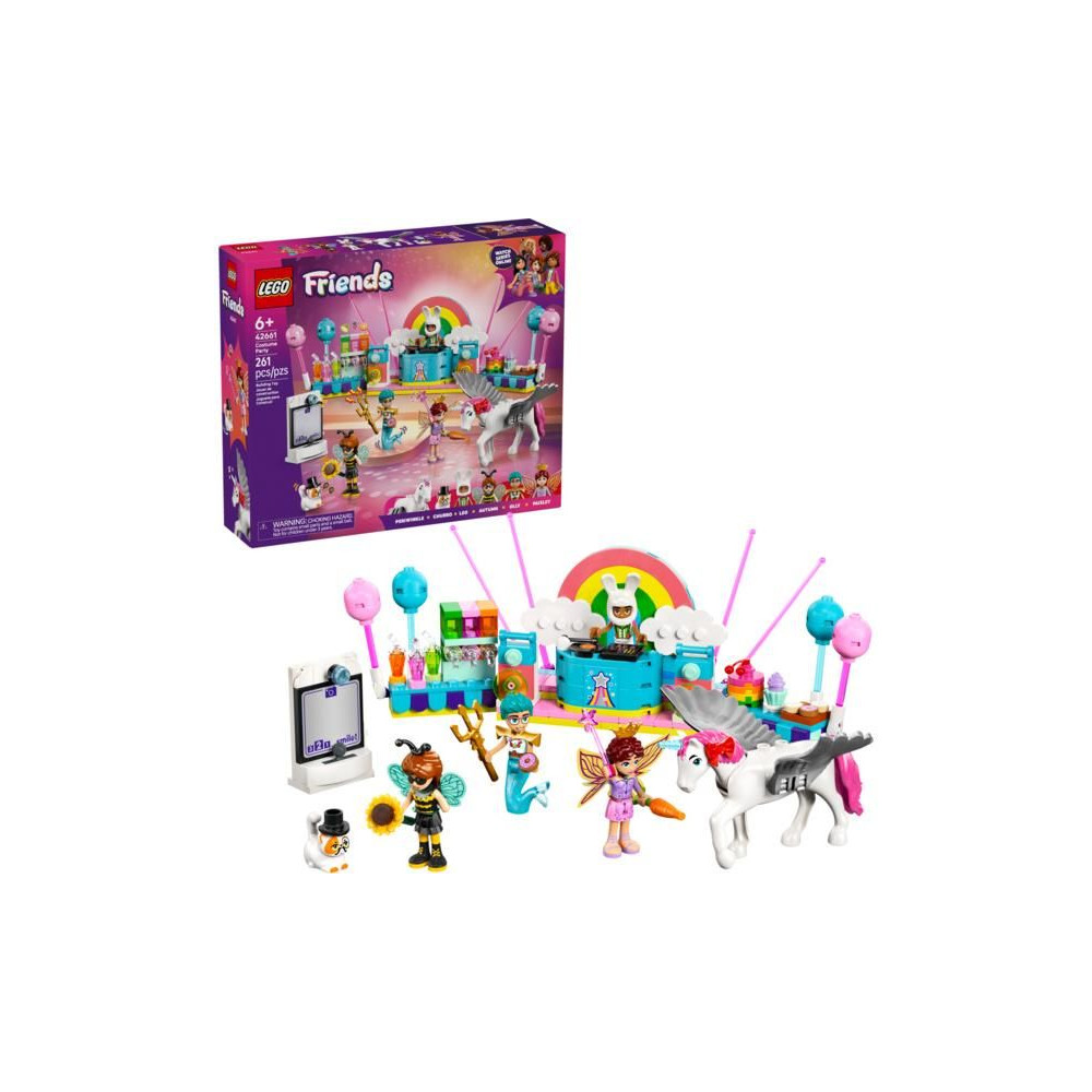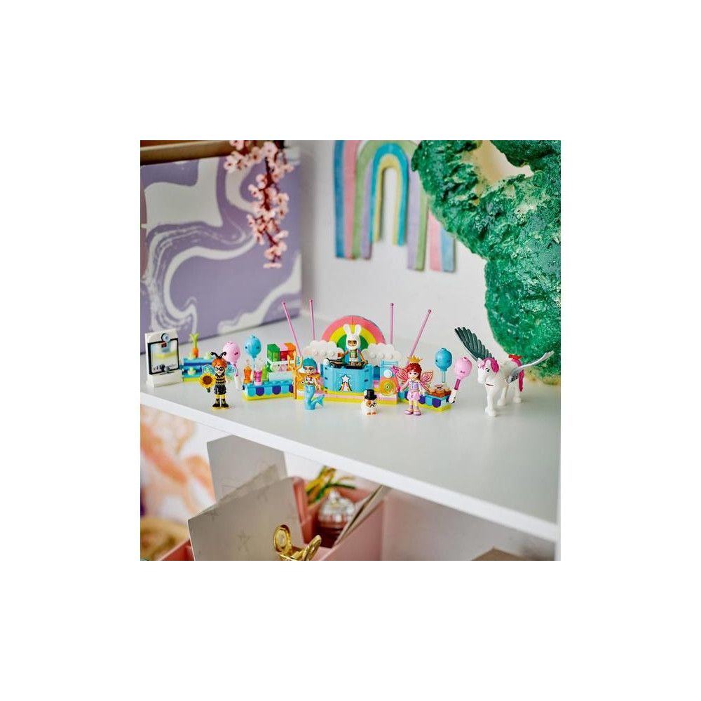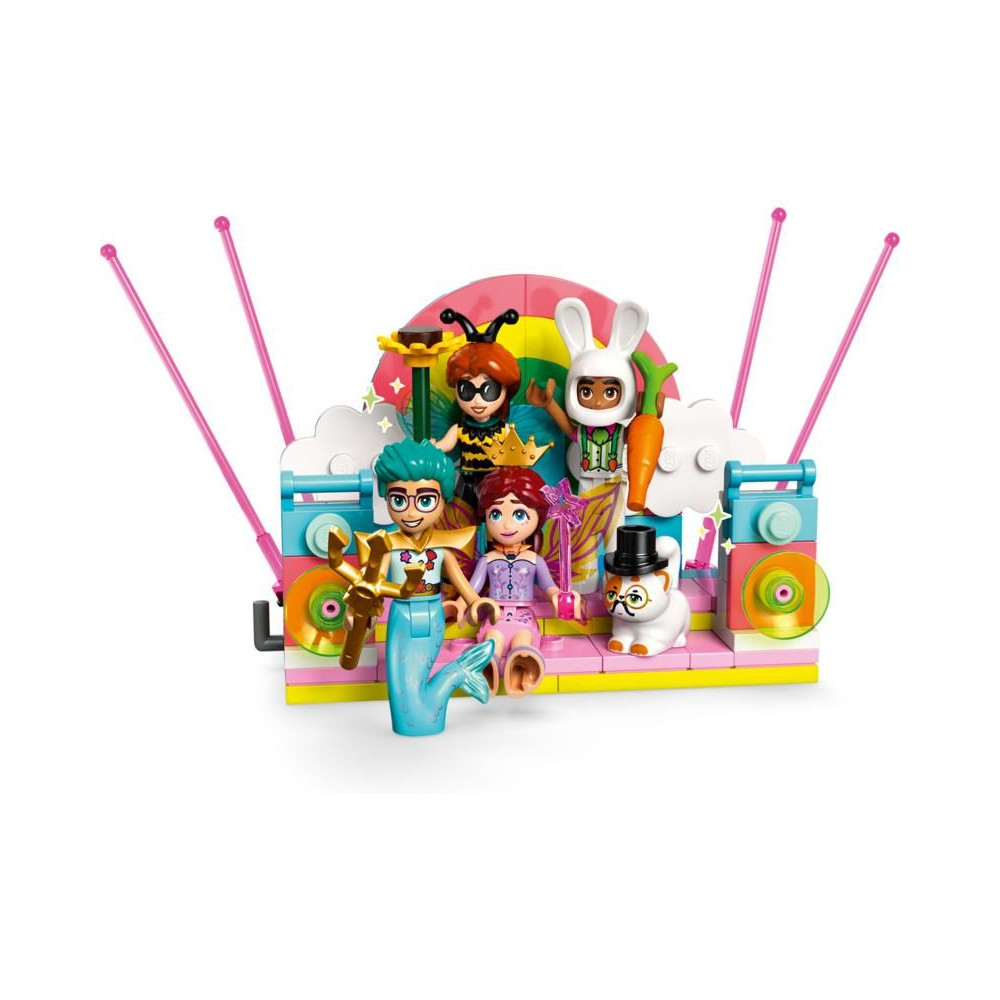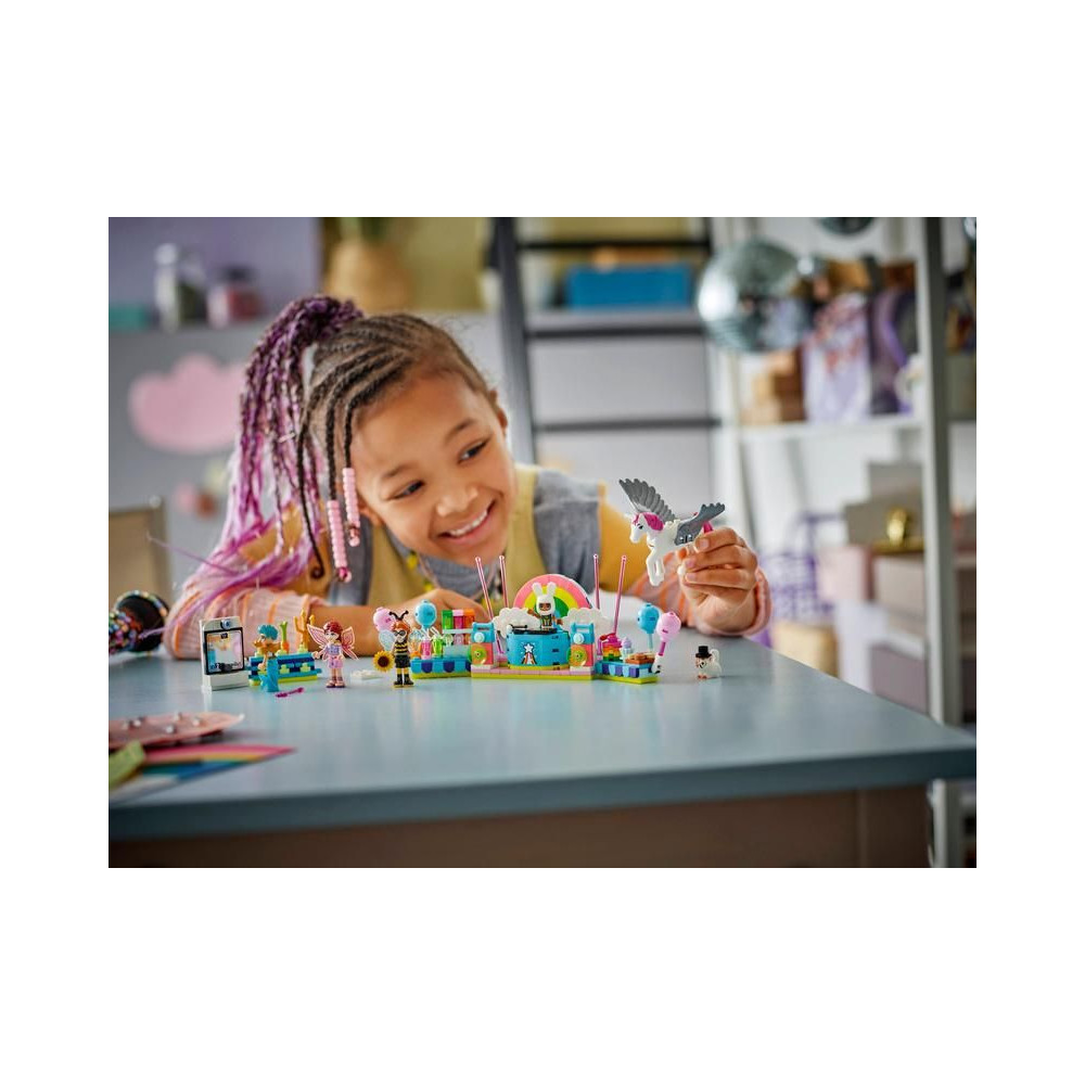 A 6 éves kortól lányoknak és fiúknak szánt LEGO® Friends jelmezbál készlet unikornist és tündért tartalmaz, amely 4 LEGO Friends minibabát, egy macskafigurát és egy lófigurát tartalmaz.