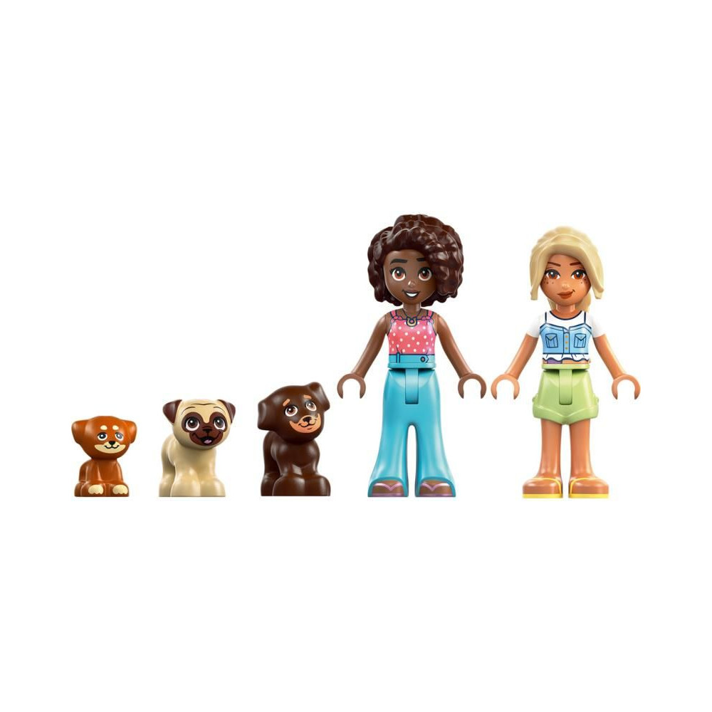 - 2 LEGO® Friends minibaba és 3 kutyafigura – Ez a készlet tartalmazza Aliya és Sara minibabákat, valamint Aira, Dango és Maple kutyusokat, amelyekkel a gyerekek különböző helyzeteket játszhatnak el és történeteket találhatnak ki a barátságról.