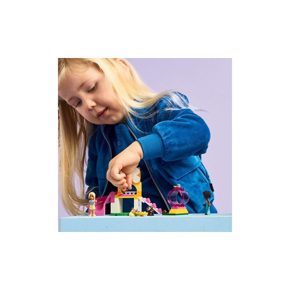 - Kutyás cukisággal teli készlet – A LEGO® Friends Kutyás Játszótér készlet 4 éves kortól lányoknak és fiúknak tartalmaz egy megépíthető játszóteret, 2 minibabát, 3 kutyafigurát és kiegészítőket.