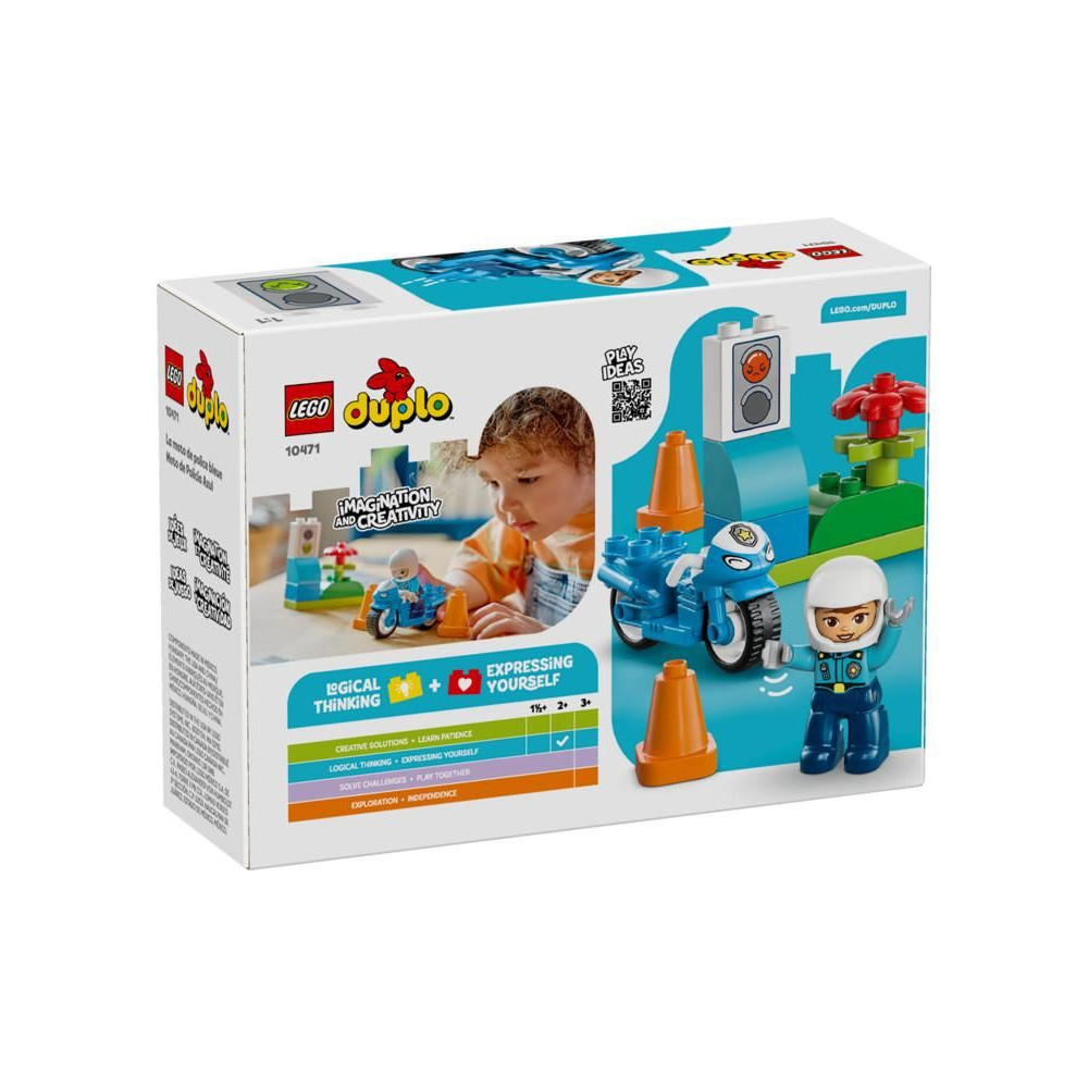 - RENDŐRSÉGI JÁTÉKOK - A LEGO® DUPLO® City Kék Rendőrmotor (10471) játékkészlettel a 2 éves kortól kezdődő kisgyermekek izgalmas kalandokra tehetnek szert egy motorkerékpárral, egy rendőrnő figurával, egy bójával és egy közlekedési lámpával.