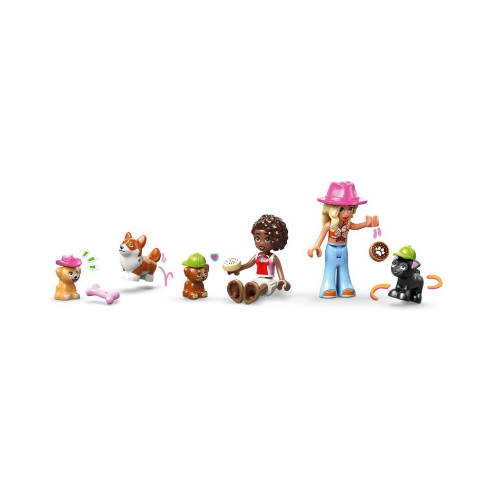 - 2 LEGO® FRIENDS FIGURA – Tartalmazza Aliya és Sage minibabákat, 4 kutyafigurát és rengeteg szórakoztató kisállat-részletet, például ajtót, rámpát, jutalomfalatokat, szórakoztató táblákat és kennelt.