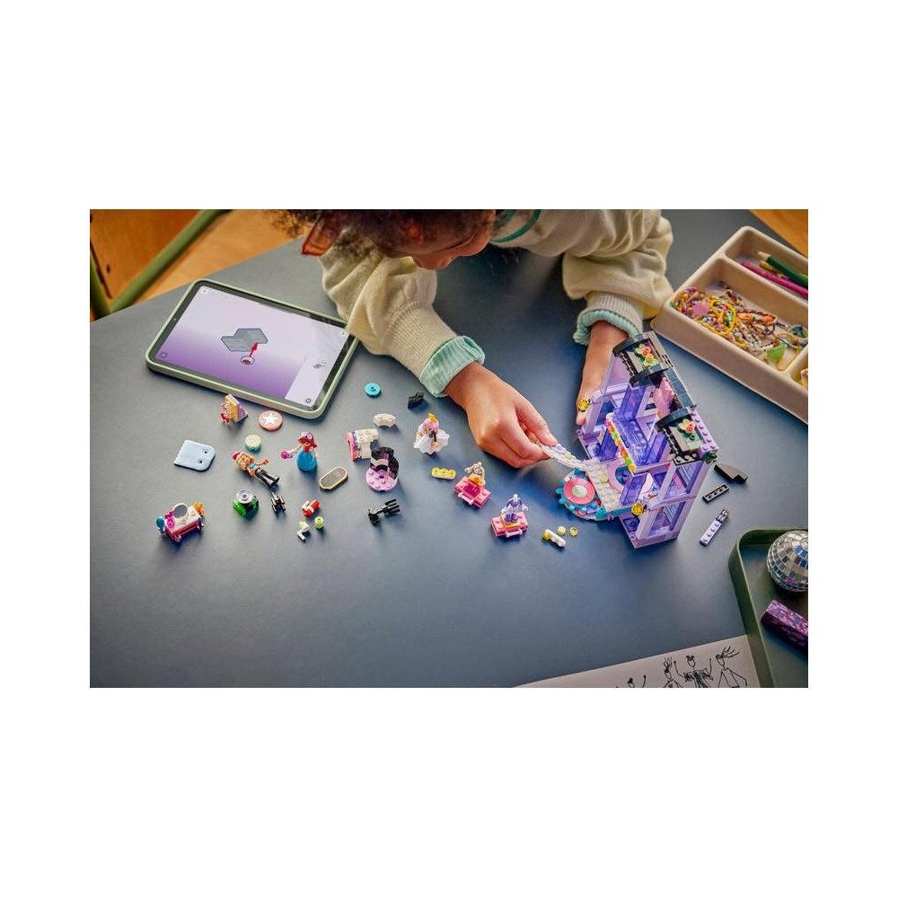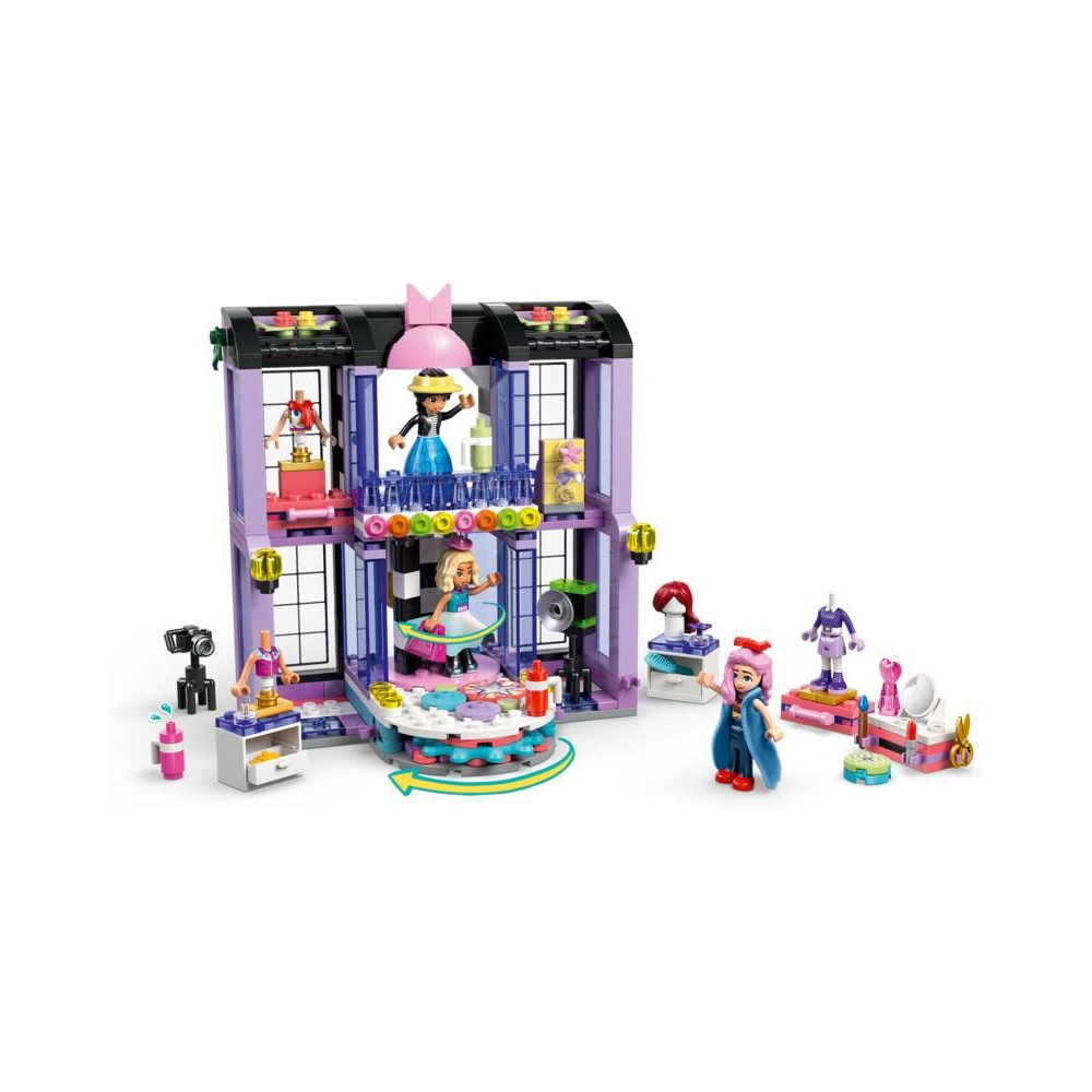 Tele aranyos részletekkel, ez a játékkészlet 3 minibabát és rengeteg variálható ruhát tartalmaz, többek között szoknyát, kabátot, sapkát, farmert, napszemüveget és egy kézitáskát. Miután a gyerekek kiválasztották a ruháikat és kiegészítőiket, elhelyezhetik a LEGO Friends szereplőket a forgó platformon, és elküldhetik őket, hogy megmutassák modelljeiket a kifutón. Élvezd a kreatív játékot olyan részletekkel, mint az öltözőasztal, tükrök, kamerák és egyéb kiegészítők, amelyekkel a gyerekek igazi divatbemutató stílusában szórakozhatnak.