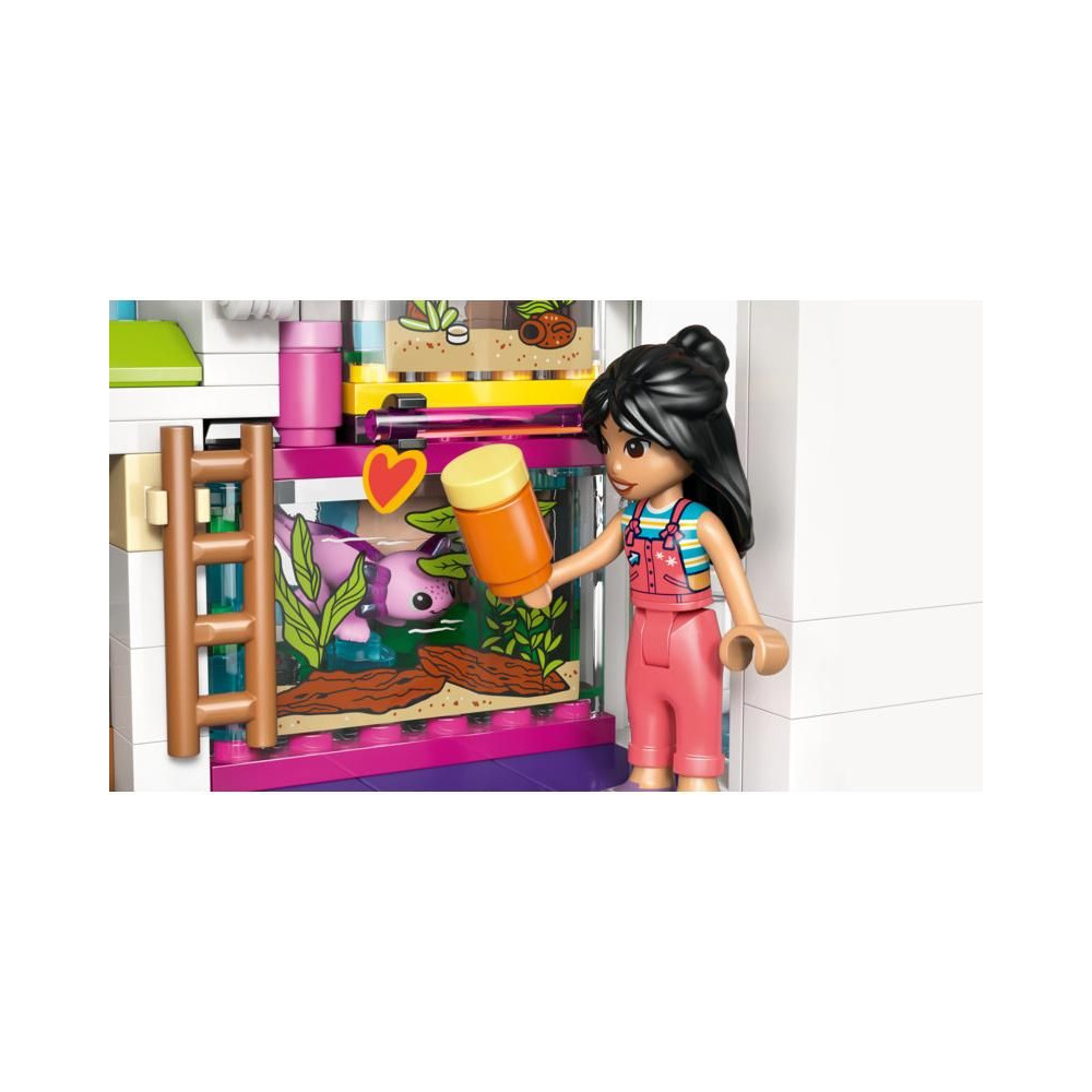 - 4 LEGO® FRIENDS SZEREPLŐ – Ez a készlet tartalmazza Liann, Michelle, Paisley és Nova minibabákat, valamint gekkó és axolotl figurákat saját terráriummal és etetőhellyel.