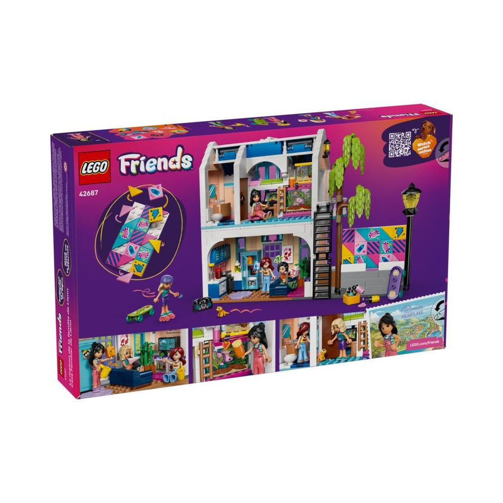 Üdvözlünk Lianna családi otthonában (42687), ahol a 7 éves kortól kezdődő gyerekek saját történeteket találhatnak ki. A lányok és a fiúk felfedezhetnek egy gyönyörű LEGO® házat konyhával, nappalival, hálószobával, erkéllyel és kerttel. Próbálj ki különböző hobbikat – Liann és barátai szeretnek gördeszkázni, művészetet csinálni, és gondoskodni egy gekkóról és egy axolotlról. A kidolgozott játék 4 minibabát és rengeteg kiegészítőt tartalmaz.