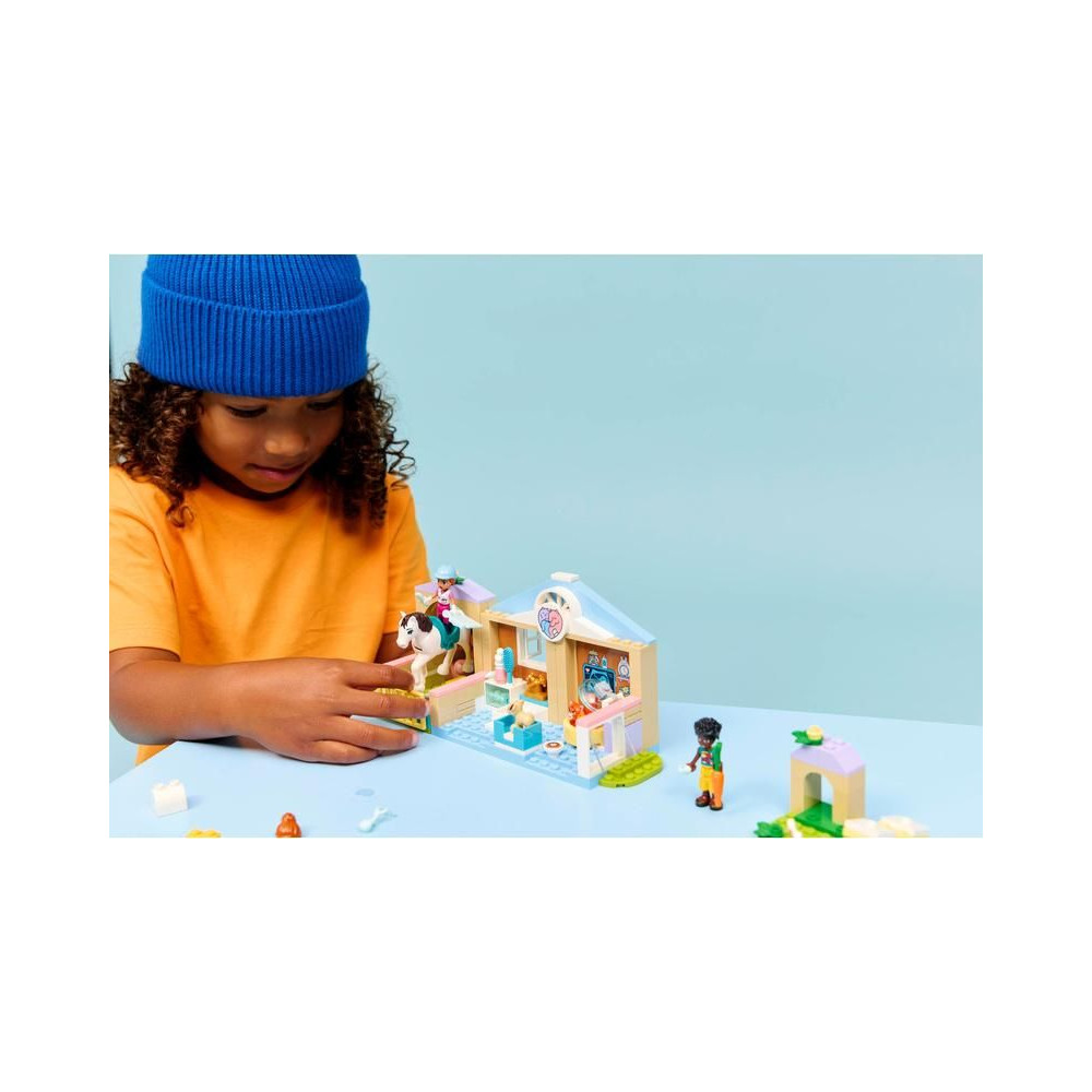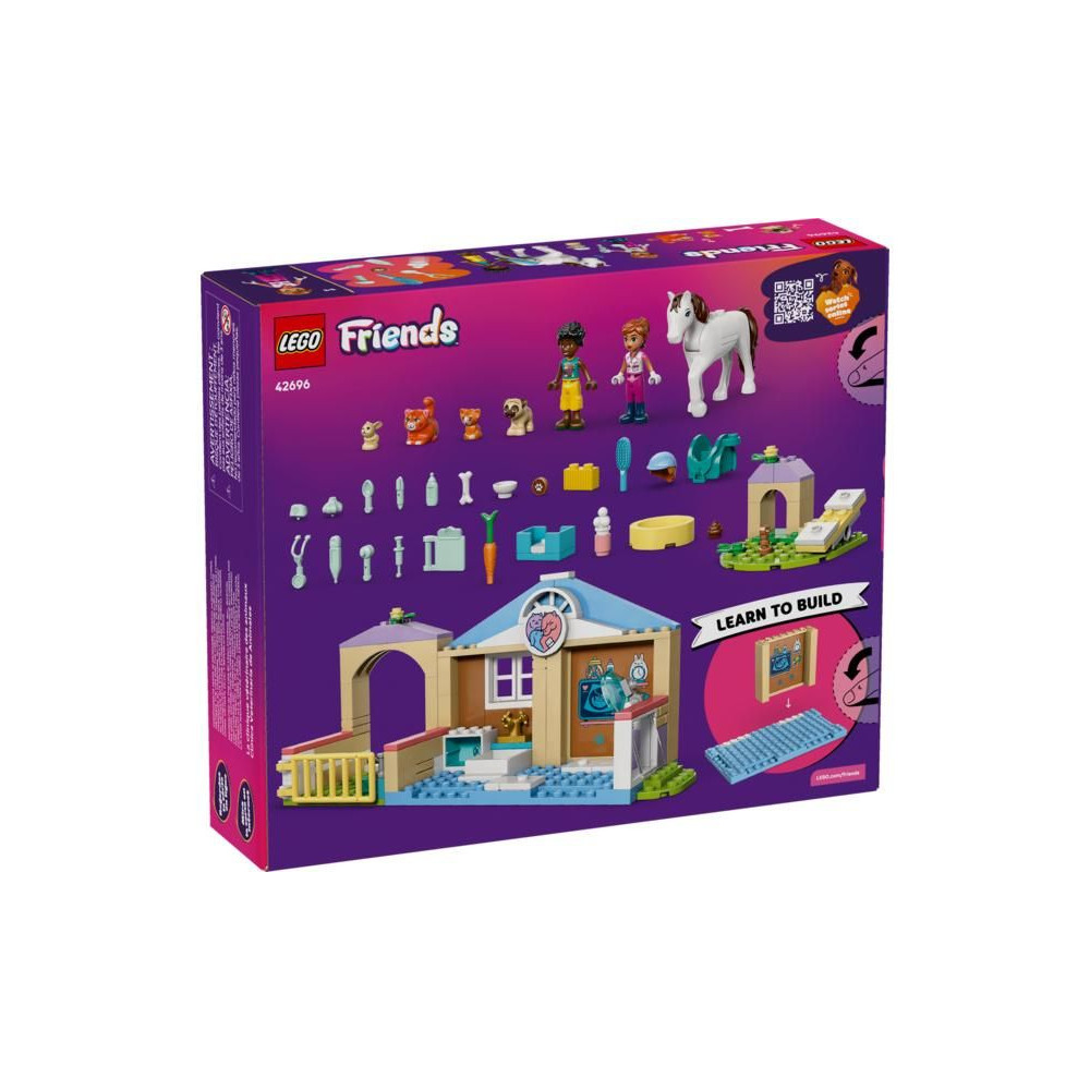 - HÁZIÁLLAT-GONDOZÁS – A LEGO® Friends Állatorvosi Klinika (42696) készlet mindent tartalmaz, amire a gyerekeknek szükségük van az állatgondozáshoz, beleértve egy lóistálló modellt, vizsgálót, játszóteret háziállatoknak és még sok mást.
