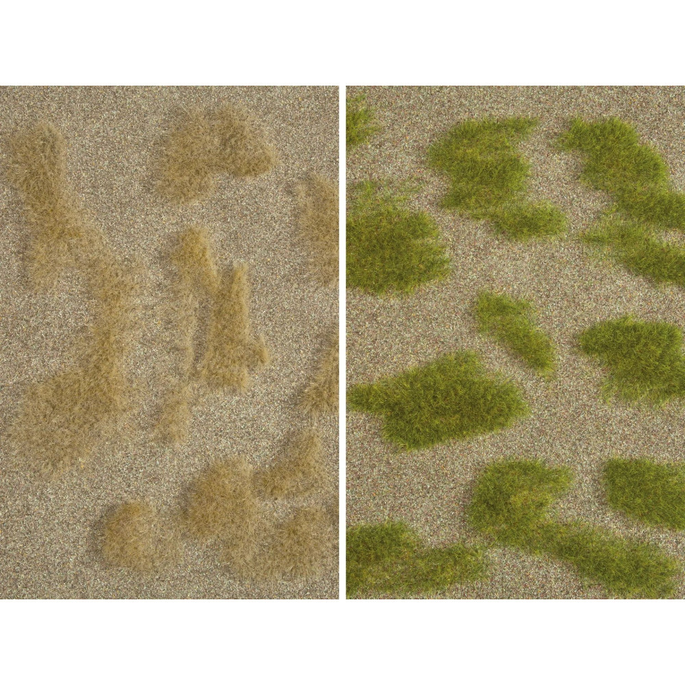 Mini podložky Natur+ za rozumnú cenu sú malou, ale prepracovanou novinkou pre začiatok realistického modelovania krajiny. S Natur+ Mini Mats môžete vytvoriť ešte prirodzenejší vzhľad vašej modelovej krajiny. Kým pri bežných rohožiach na trávu prichádza do úvahy len jedna dĺžka vlákna a -farba, rohože Natur+ Mini Mats sú flokované dvoma rôznymi dĺžkami trávnych vlákien a -farbami. Elektrostatickým nabíjaním vlákien počas výrobného procesu zabezpečíme, že sú kolmé na podklad a vyzerajú tak ako skutočná tráva.