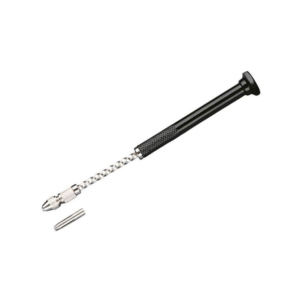 AMATI kézi fúrógép 0-1,5 mm-es fúróátmérőkhöz. Ideális fa, műanyag és fém finomfúrásához, biztonságos tokmánnyal a biztos fogásért. Alkalmas modellezéshez és barkácsoláshoz. A csomag két befogóhüvelyt tartalmaz legfeljebb 1,5 mm-es fúróátmérőkhöz. Teljes hossza kb. 18 cm.