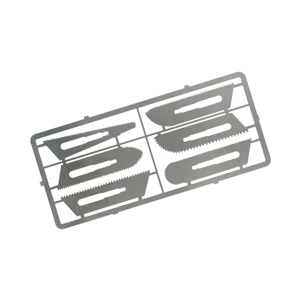 A készlet 4 nagyon finom fűrészlapot tartalmaz (vastagság 0,24 mm). Kiválóan alkalmas műanyagok, fa és maratott alkatrészek precíziós vágására. A pengék alkalmasak a kis szike nyeléhez. A szike és nyél készlet (SH-PKN0009/K) szintén megvásárolható.