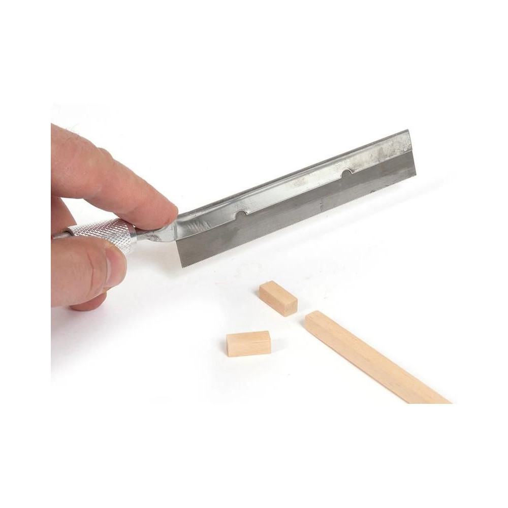 Az OCCRE 27x114 mm-es modellező fűrész fa és műanyagok vágására szolgál, sűrű fogazattal a precíz és finom vágásért. A vágási mélység 18 mm, a lemez hossza 114 mm. A nyélbe szorítóhüvely segítségével rögzíthető.
