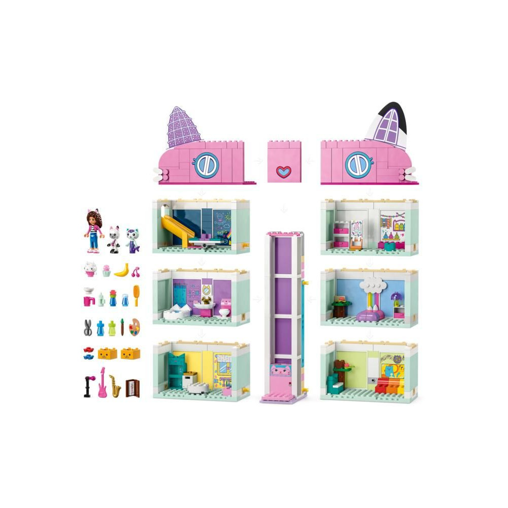 A Gaby's Magic House 8 színes szobából áll, amelyeket egy csúszó lift köt össze. Minden szobában rengeteg tevékenység várja a gyerekeket. Például süthetnek a konyhában, csúszdázhatnak a játszószobában, alkothatnak a művészeti szobában, zongorázhatnak a zeneszobában, pihenhetnek a fürdőszobában, szundikálhatnak a hálószobában, vagy felmehetnek a tetőre, és partit rendezhetnek a forgó táncparketten. A gyerekek a sorozat 4 kedvenc szereplőjével, Gabyval, Panda Mancsal, Cake-csel és Fish-csel fognak társulni. A LEGO Builder alkalmazás intuitív eszközöket tartalmaz a modell nagyításához és forgatásához. A kezdő tégla biztosítja, hogy a gyerekek azonnal belevághassanak az építésbe.