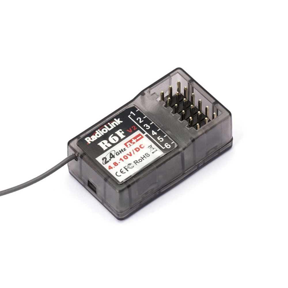 A Radiolink R6F 2.4GHz egy 6 csatornás frekvenciaugrásos FHSS vevő, amely kompatibilis a Radiolink RC4GS, RC6GS RC autós adóval és a T8FB és T8S repülőgép adóval. Mind a normál meghajtású szervókkal, mind a "nagyfeszültségű" (HV) szervókkal képes együttműködni. a vevő alkalmas RC autókhoz, tankokhoz és más földi járművekhez, valamint RC hajókhoz (a gyártó által megadott hatótávolság akár 400 m a földön).