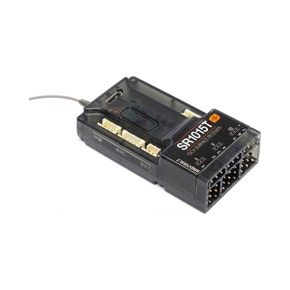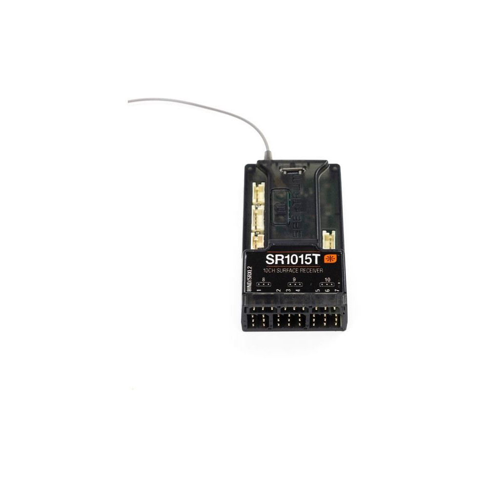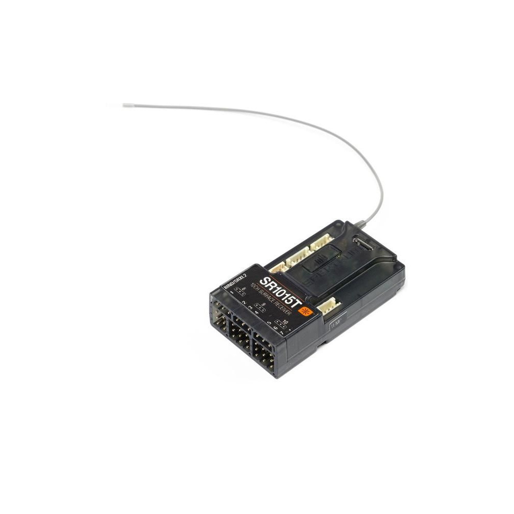 Spektrum SR1015T RC vevőegység 10 csatornával és DSMR+/DSMR modulációval RC autó- és hajómodellekhez. Kiváló hatótávolság és válaszidő, teljes telemetriai tartomány, hibatűrő képesség, telemetriai portok. A vevőegység támogatja a Spektrum Smart technológiát.