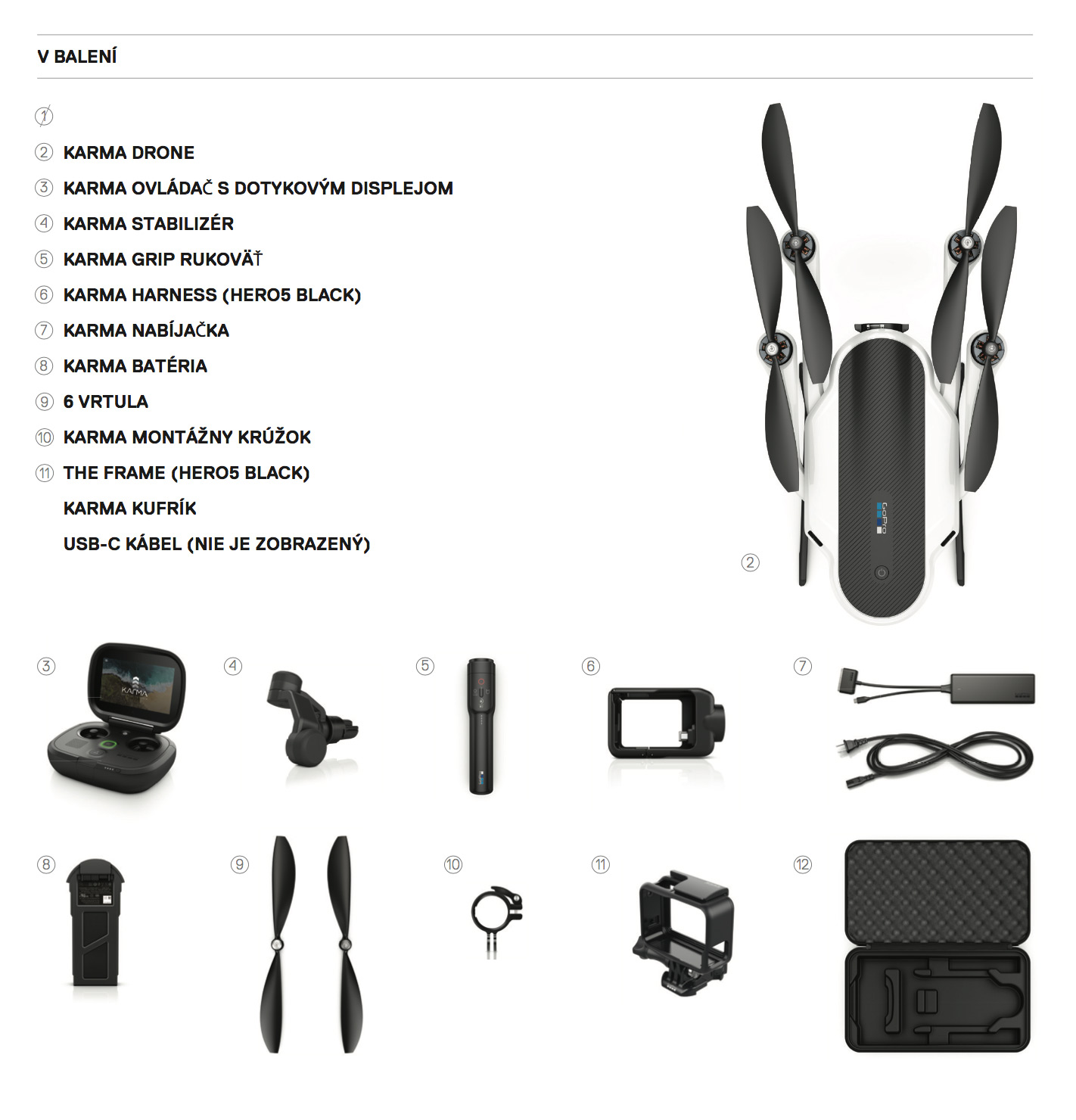 a ľahko prenosné riešenie, ktoré sa zloží, aby ste ho zmestili do vlastného púzdra. Joystickový ovládač so vstavaným dotykovým dispejom robí ovládanie Karmy zábavným a jendoduchým. Priložený stabilizátor kamery môže byť odňatý a pripojený ku Karma Gripu (v balení) pre stabilné profesionálne zábery natáčané z ruky alebo prichytené k vybaveniu. Viac ako dron. To je Karma.