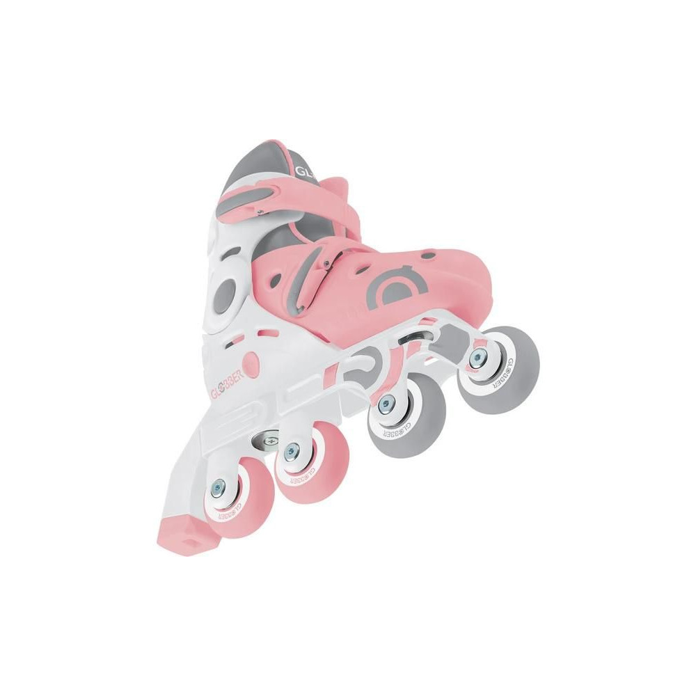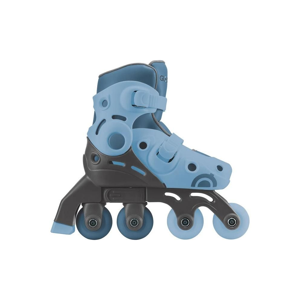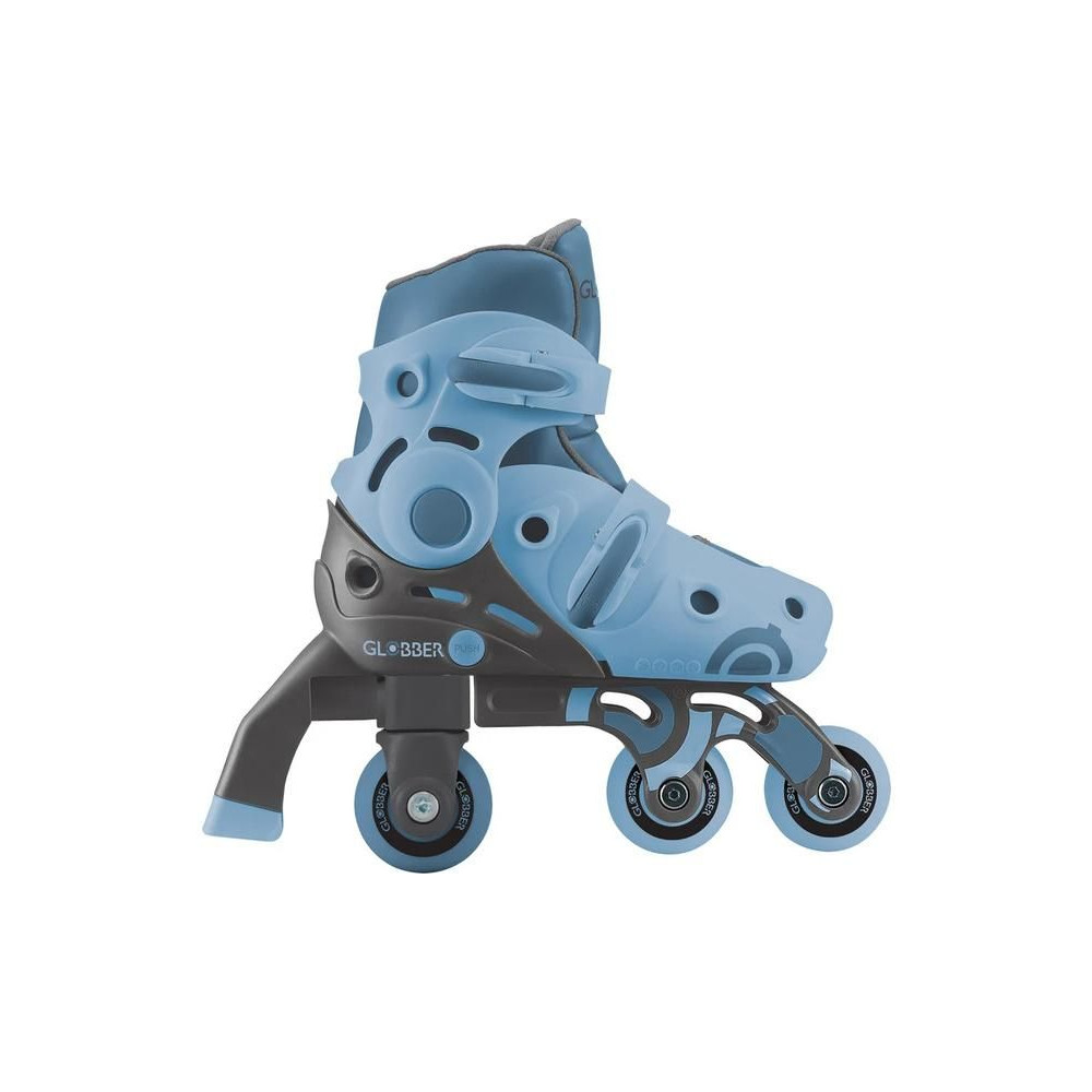 Globber - 2in1 gyermek görkorcsolya, első tanuló korcsolyának alkalmas, köszönhetően a hátsó kerekek könnyű elfordításának lehetőségének, amelyek a nagyobb stabilitás érdekében egymás mellett lehetnek. Állítható cipőhossz EU 26-29. PU kerekek ø48mm (szélesség 24mm). Kiváló minőségű ABEC 5 csapágyak. Csatos rögzítés.