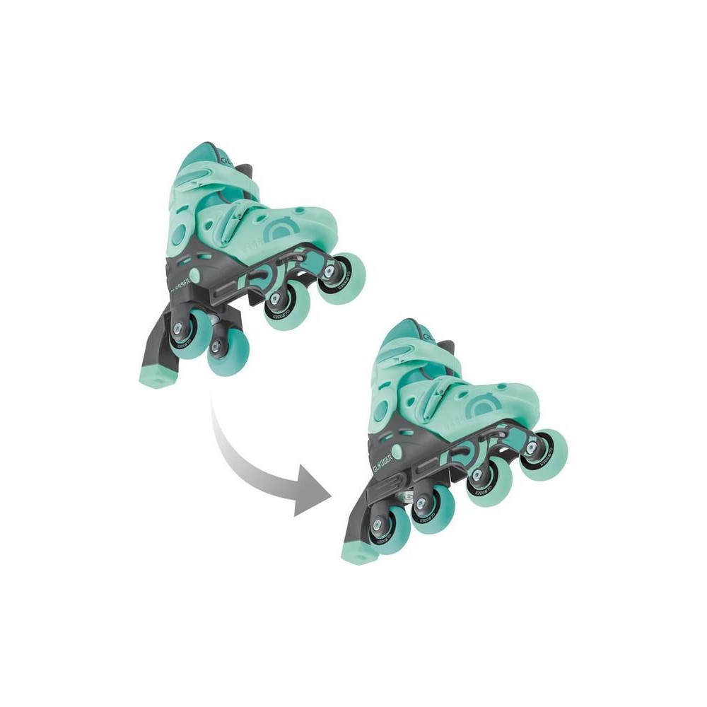 Görkorcsolya gyerekeknek a szórakozás és a tanulás kombinációjával. Innovatív, forgó hátsó kerékmodullal rendelkeznek, amely lehetővé teszi a két üzemmód közötti egyszerű váltást: tanulási és inline üzemmód. Egyszerűen forgassa el a hátsó modult 90°-kal, szerszámok nélkül.