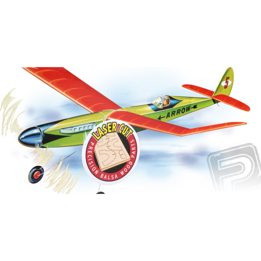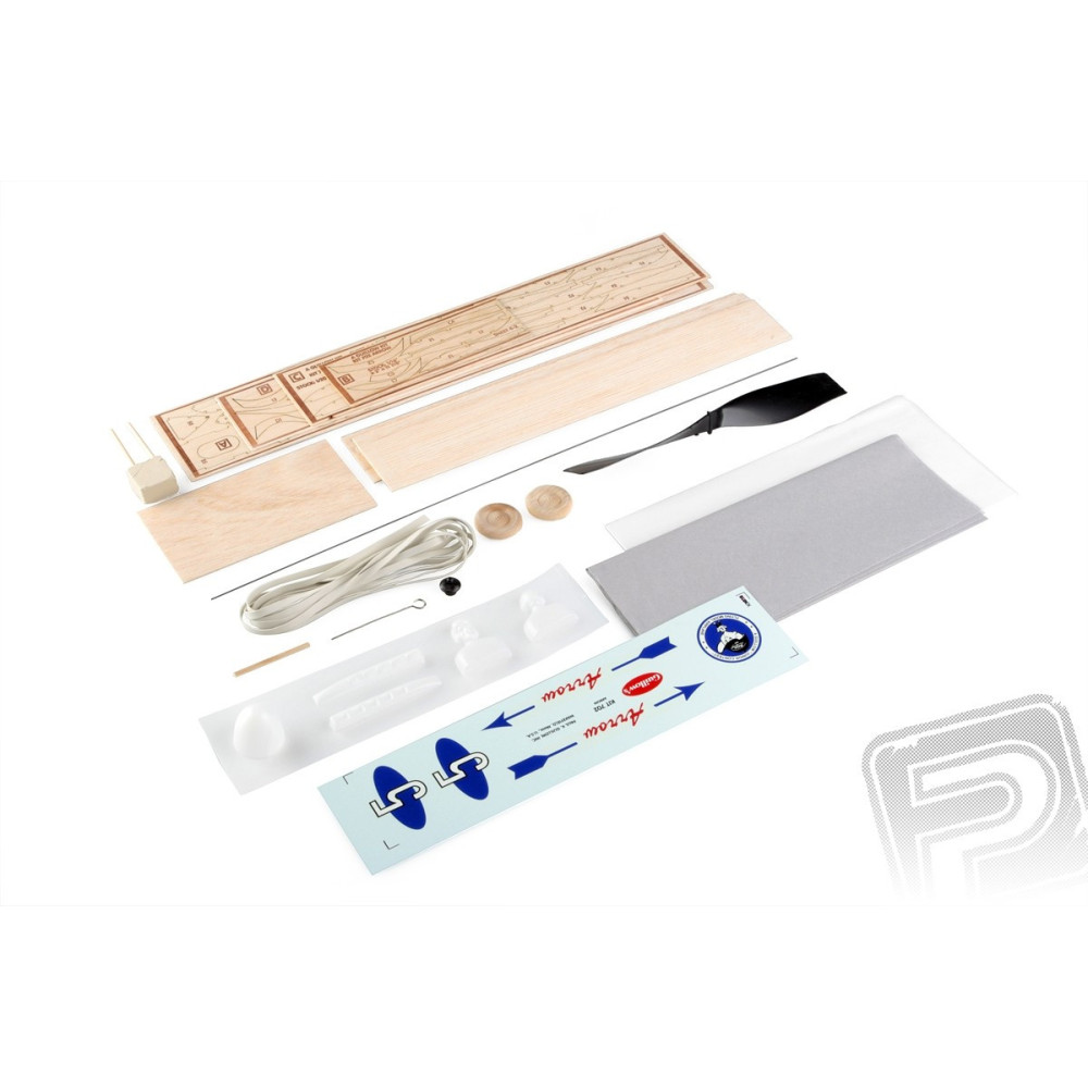 Az Arrow toplane, amelyet a modellezés és a repülés korai időszakából származó klasszikus gumikötegek ihlettek, ideális első lépés egy olyan modellező számára, aki gumikötegmotoros minirepülőgépek építésébe szeretne belekezdeni (általános modellként a klasszikus építéssel kapcsolatos alaptapasztalat megszerzéséhez javasoljuk, hogy először például az A3 vagy A1-es vitorlázórepülőink egyikét építse meg, mint például a Soy, Owl, Spark vagy Olympic). Megtanulod, hogyan kell "serleg" törzset és szárnyakat építeni, papírbevonatot készíteni - csak a klasszikus modellépítés összes alapkészségét. Nem kell sokat építkezni, nem kell több száz órát a műhelyben töltened, a magasan előmunkált, lézerrel kivágott alkatrészeknek köszönhetően úgy megy, mint a karikacsapás. Ráadásul az építési folyamathoz sem fér kétség - számok szerint építkezel! Először az 1. rész, aztán a 2. rész, majd a 3. rész...